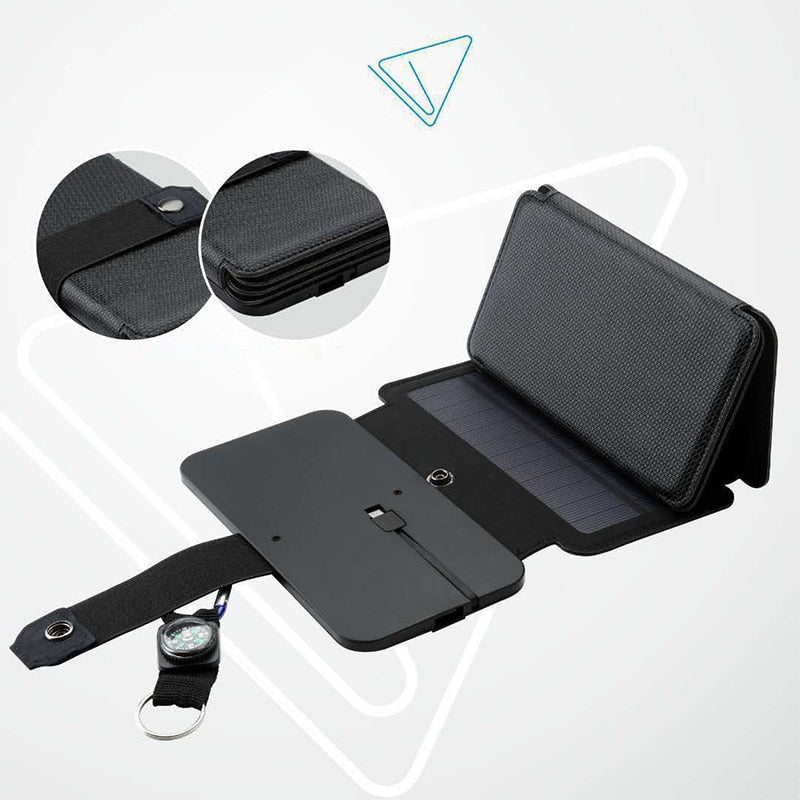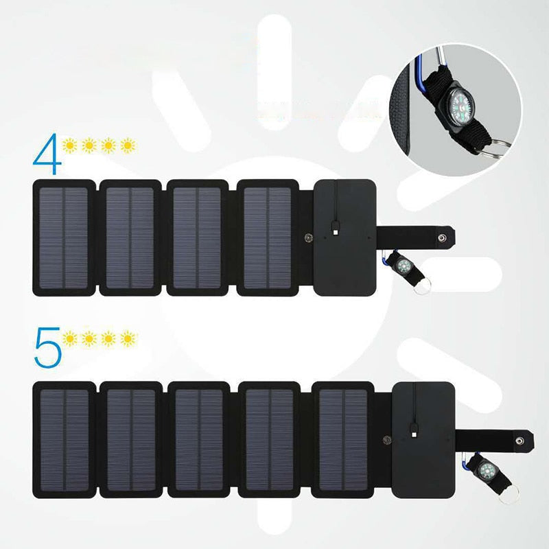 charger: solar panel 4 folding is 8W, 5 folding 10W.