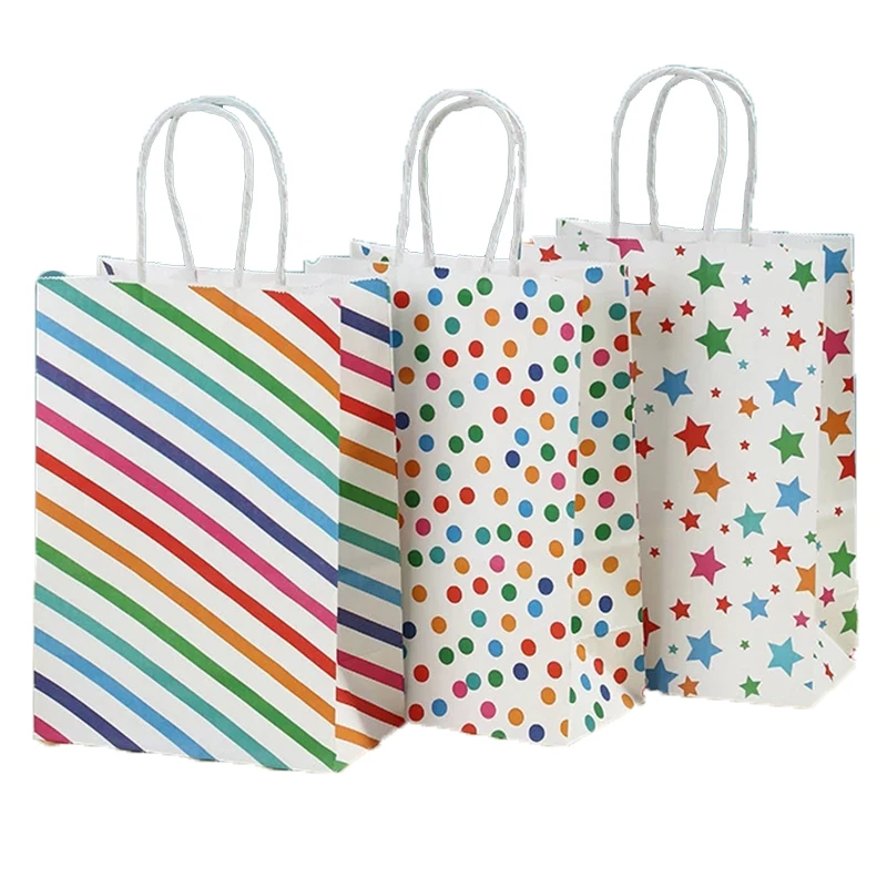 12pcs Rainbow Kraft Paper Gift Bags with Handle Candy Favor Bag Christmas Wedding Baby Shower Kids Birthday Goody Bag Party Decor