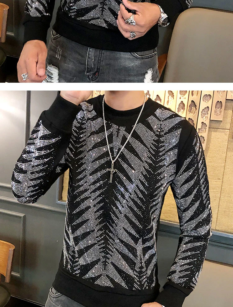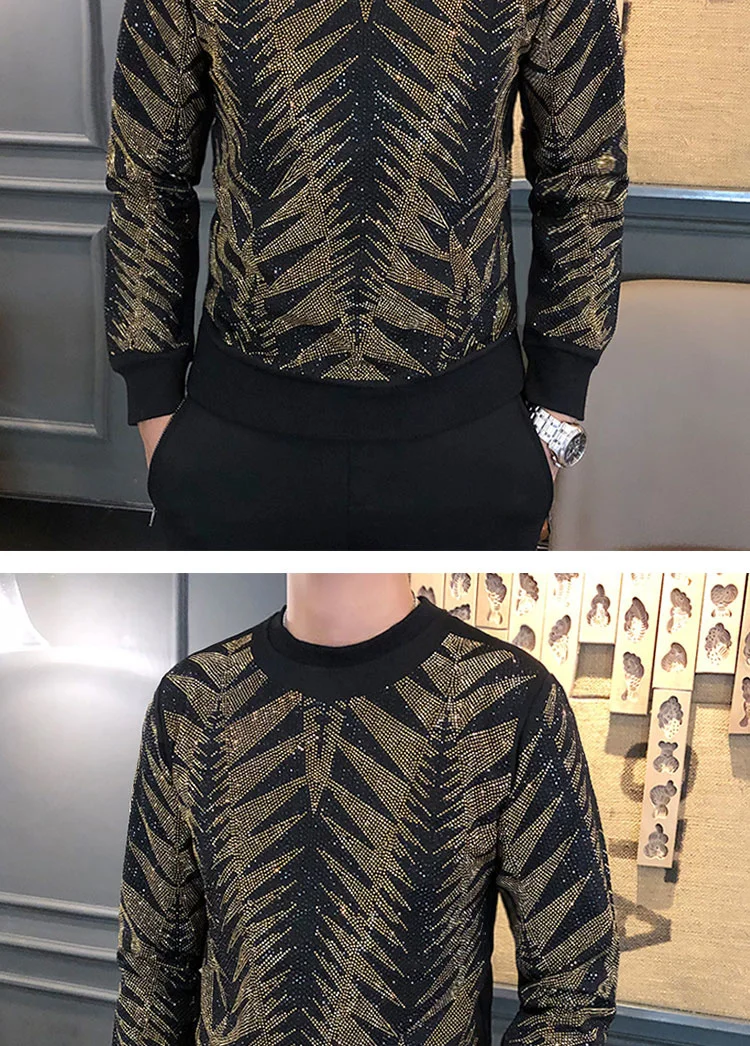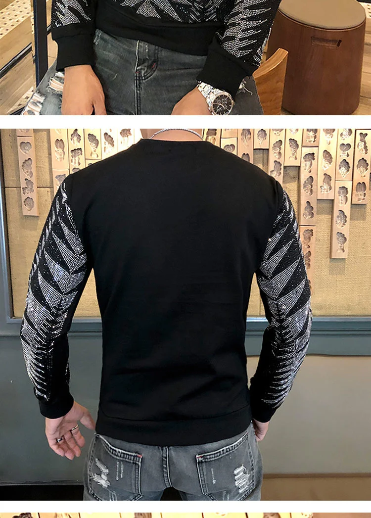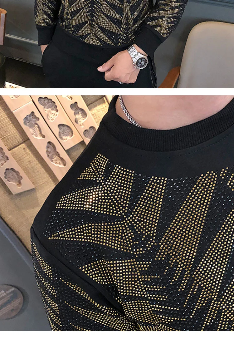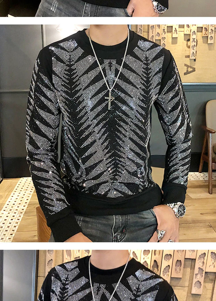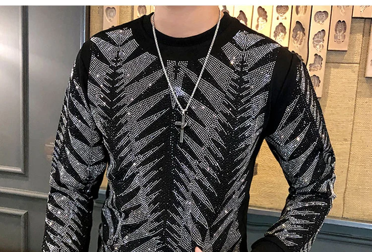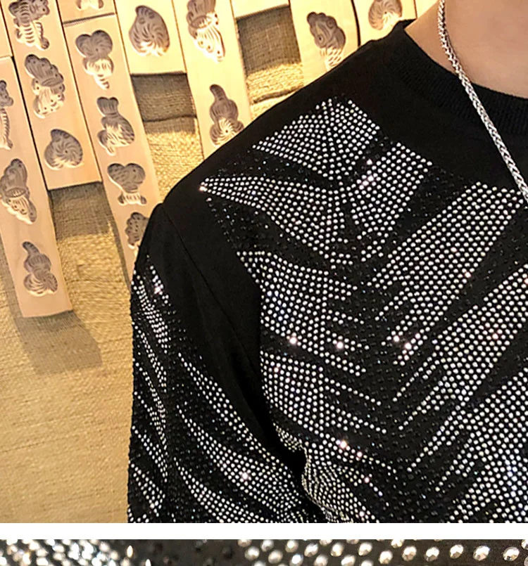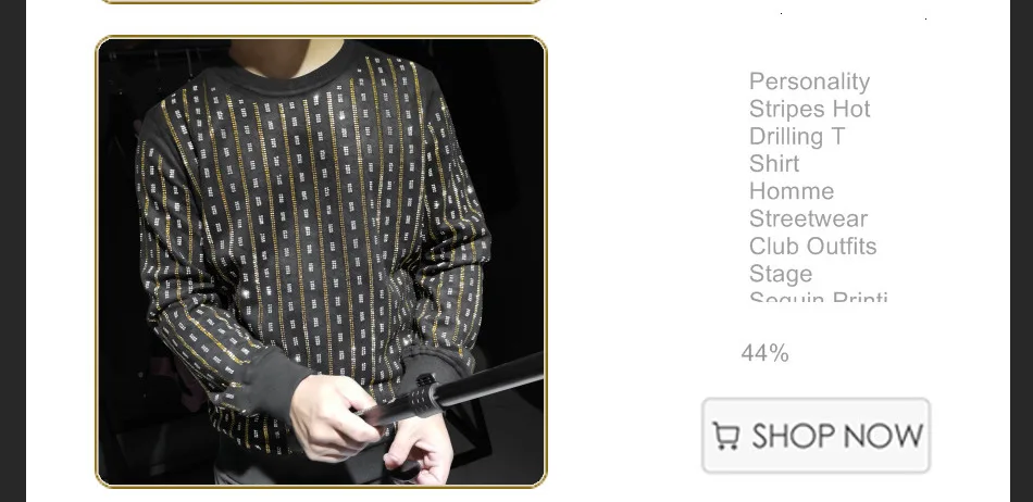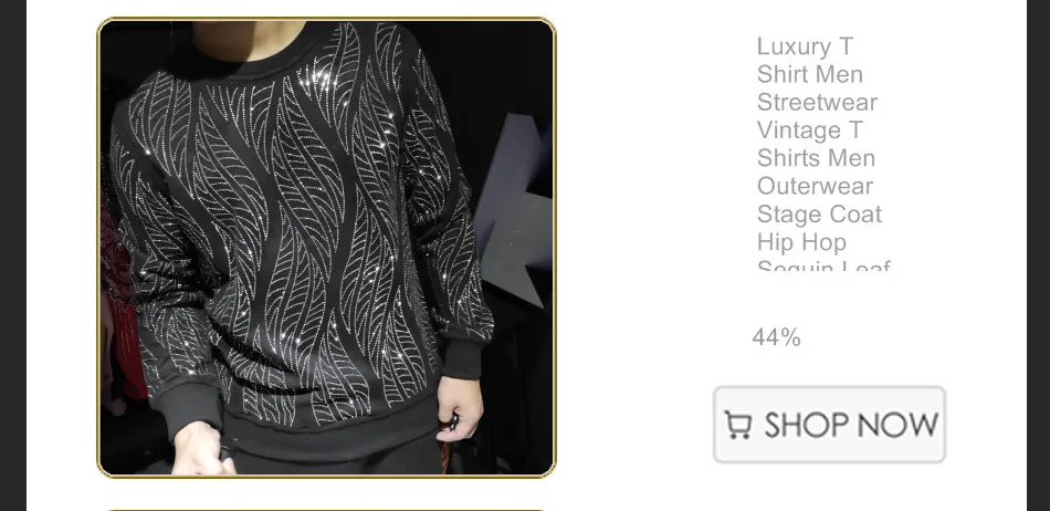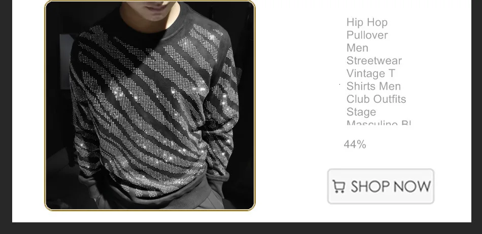 Camiseta Masculina Casual T Shirt Men Streetwear Hip Hop Punk Gothic Tshirt Stage Tees Shirt Long Sleeve Gold Silver Shining