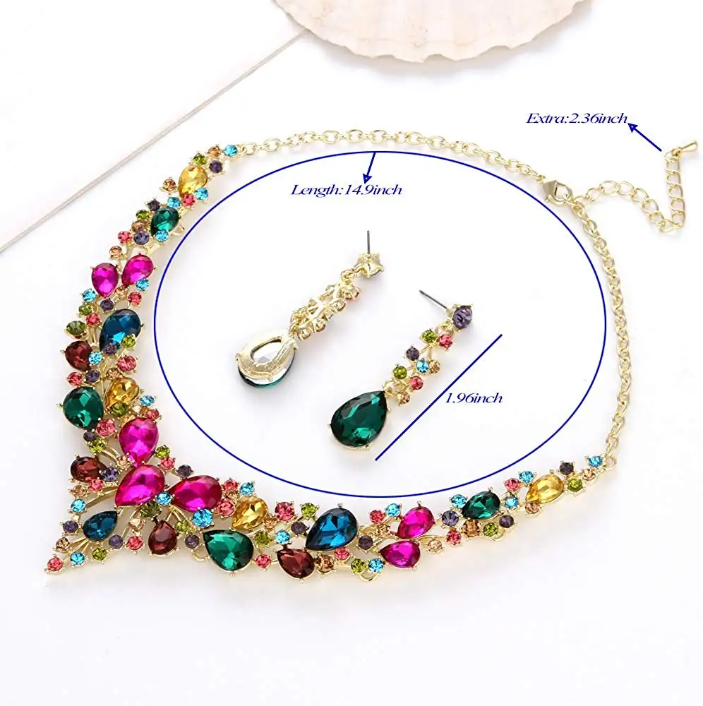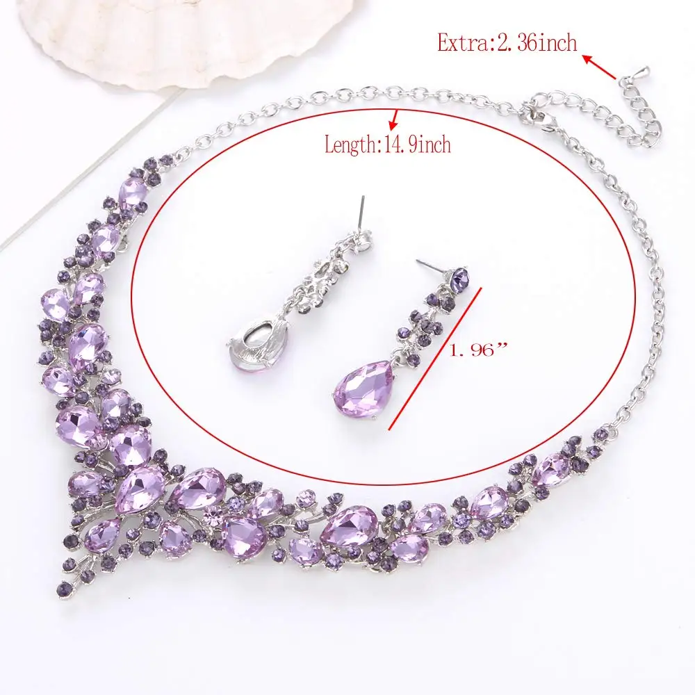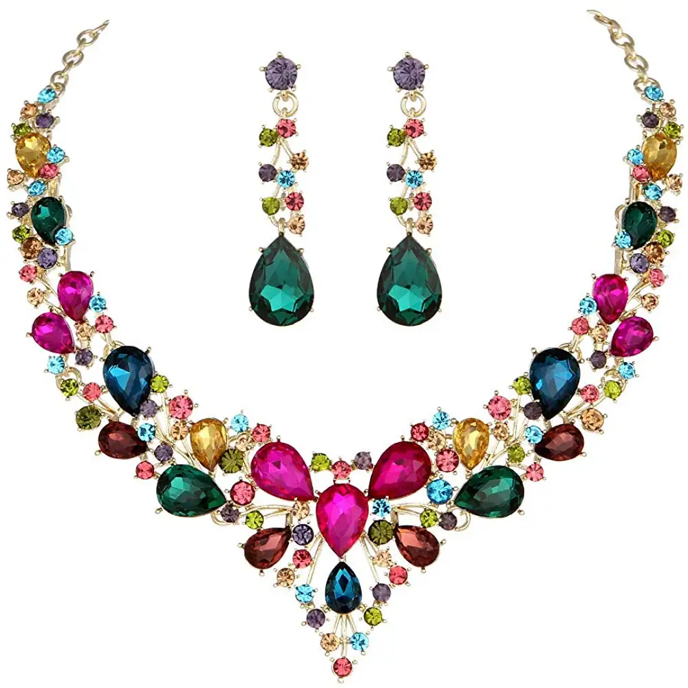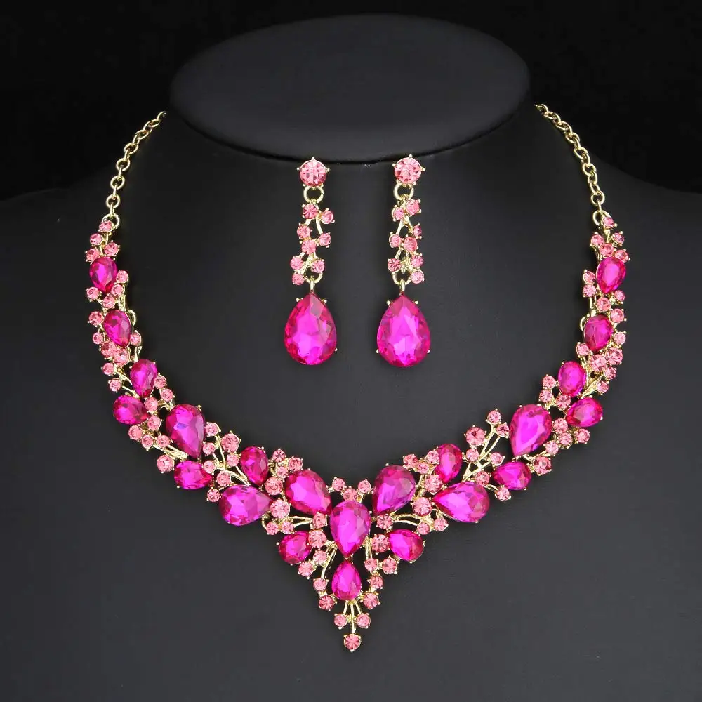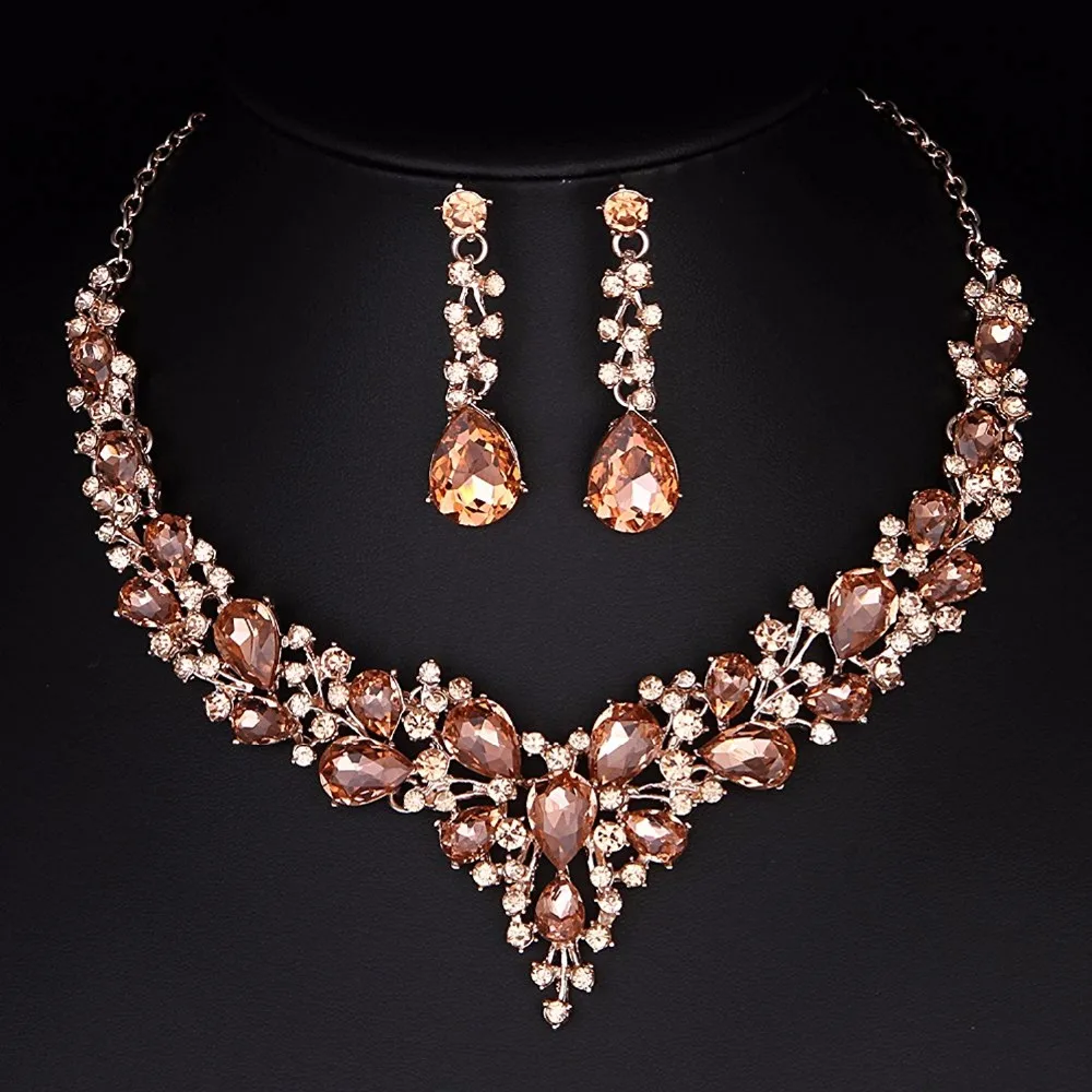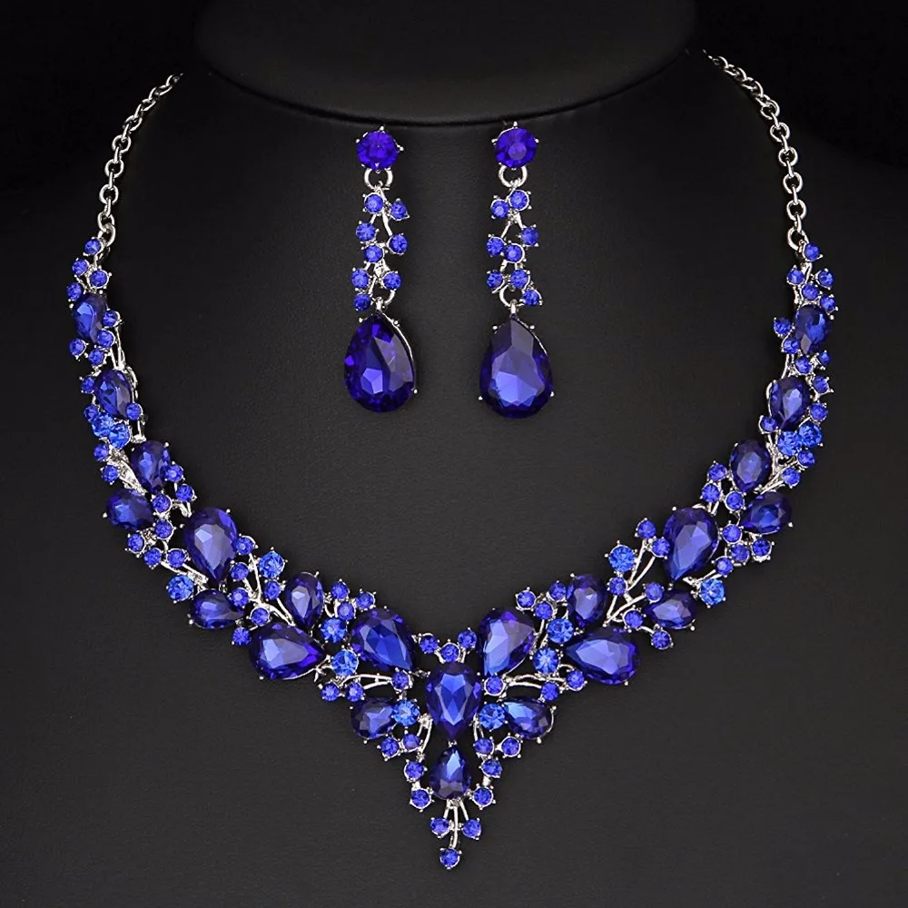 Delicate Women Austrian Crystal Jewelry Sets 16 Colors For Bridal Wedding Necklace And Earrings Sets Lady Party Fashion Jewelry
