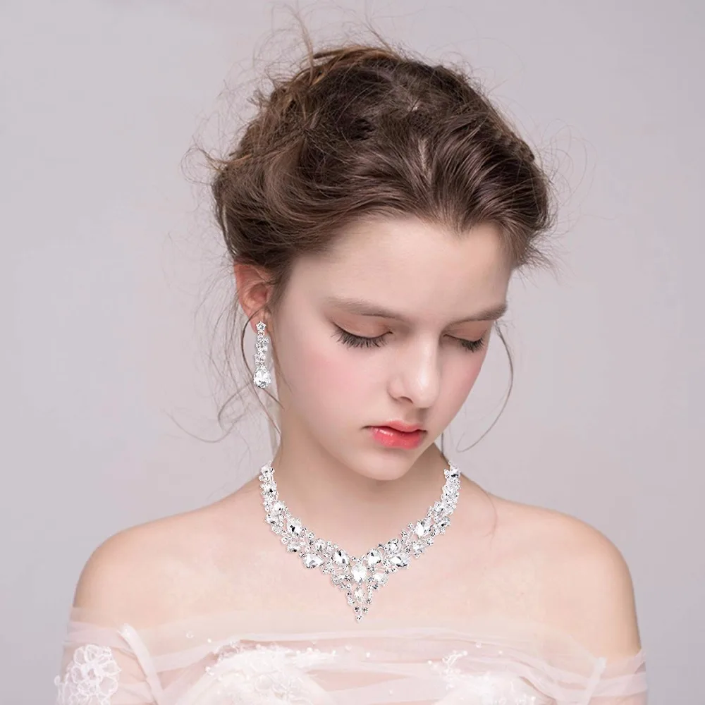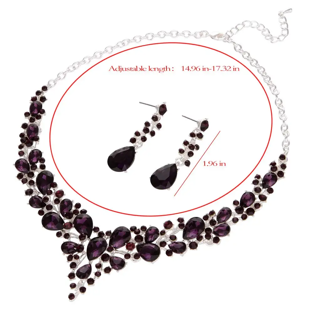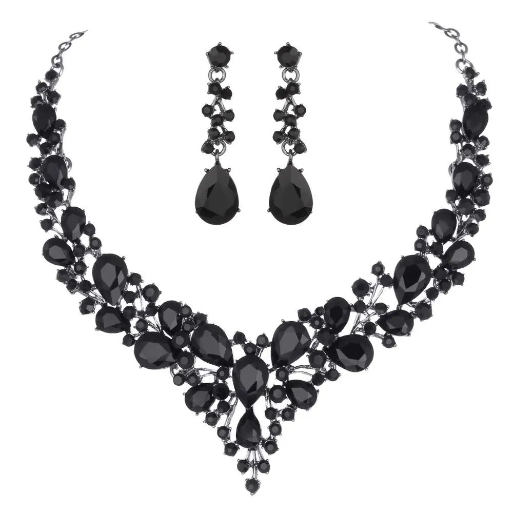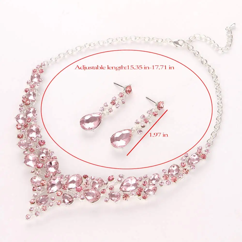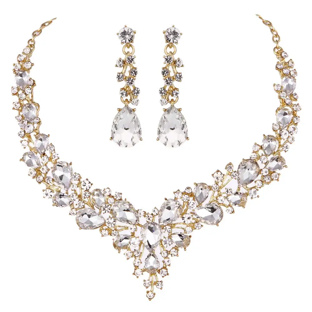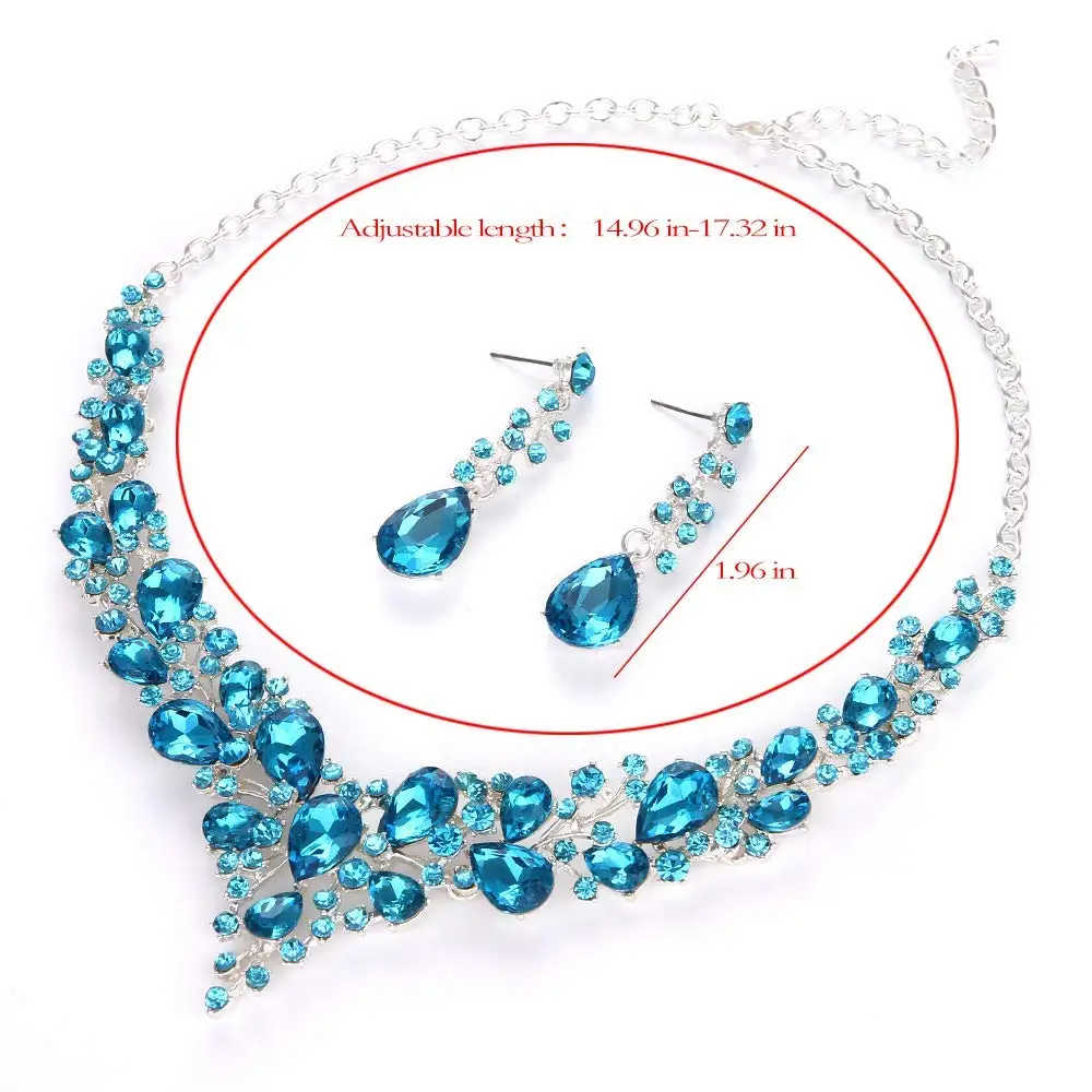 Delicate Women Austrian Crystal Jewelry Sets 16 Colors For Bridal Wedding Necklace And Earrings Sets Lady Party Fashion Jewelry