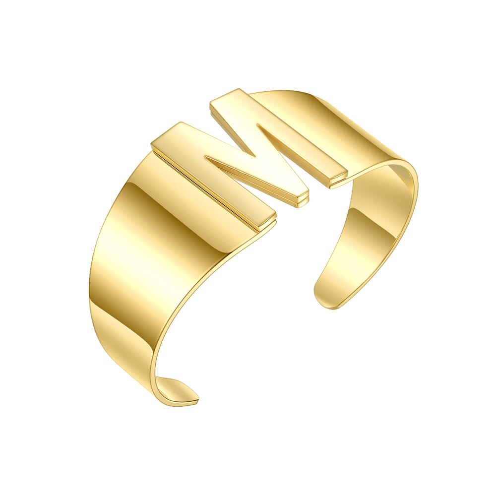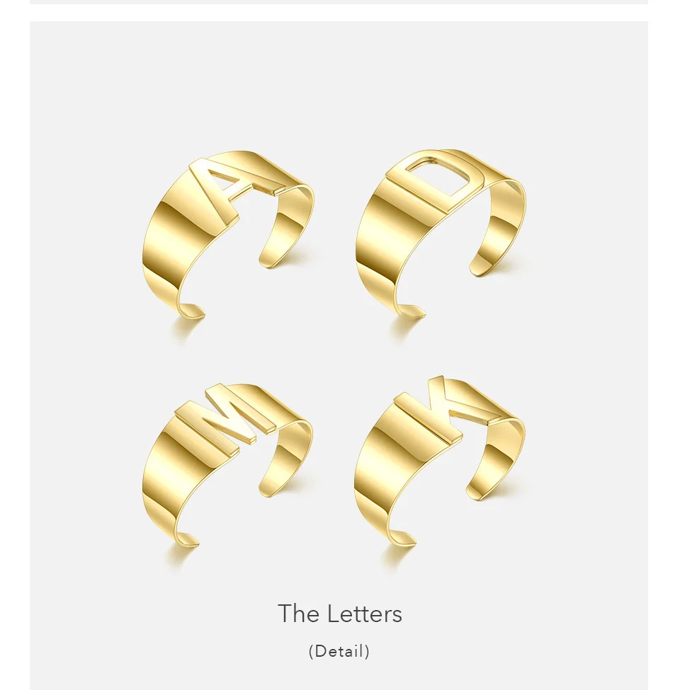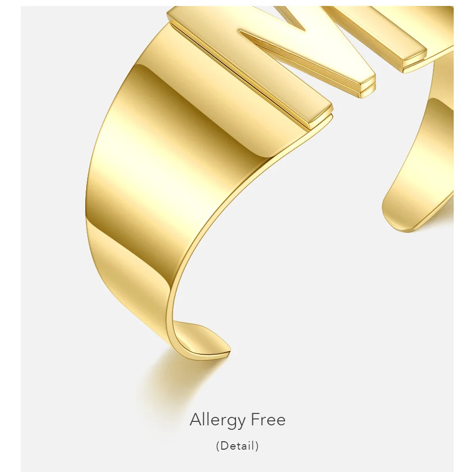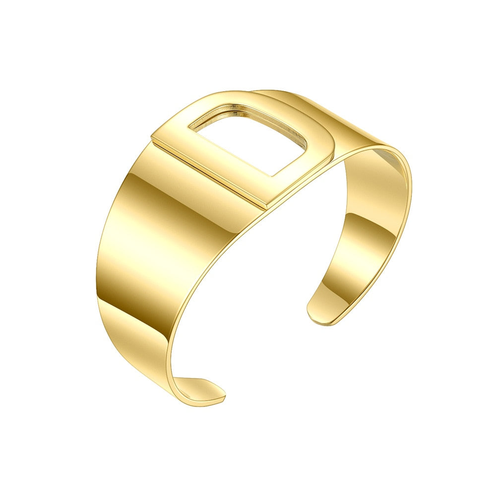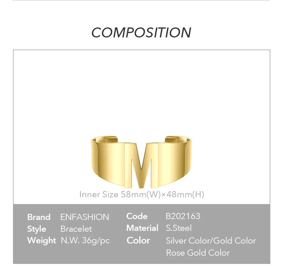 ENFASHION Initial Letter Bangles For Women Hollow Alphabet Open Bracelets Stainless Steel Gold Color Fashion Jewelry Gifts B2163