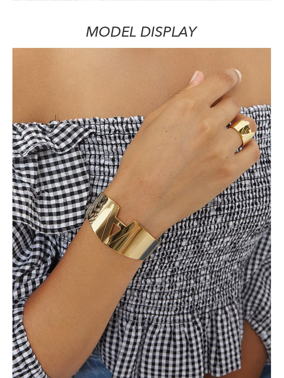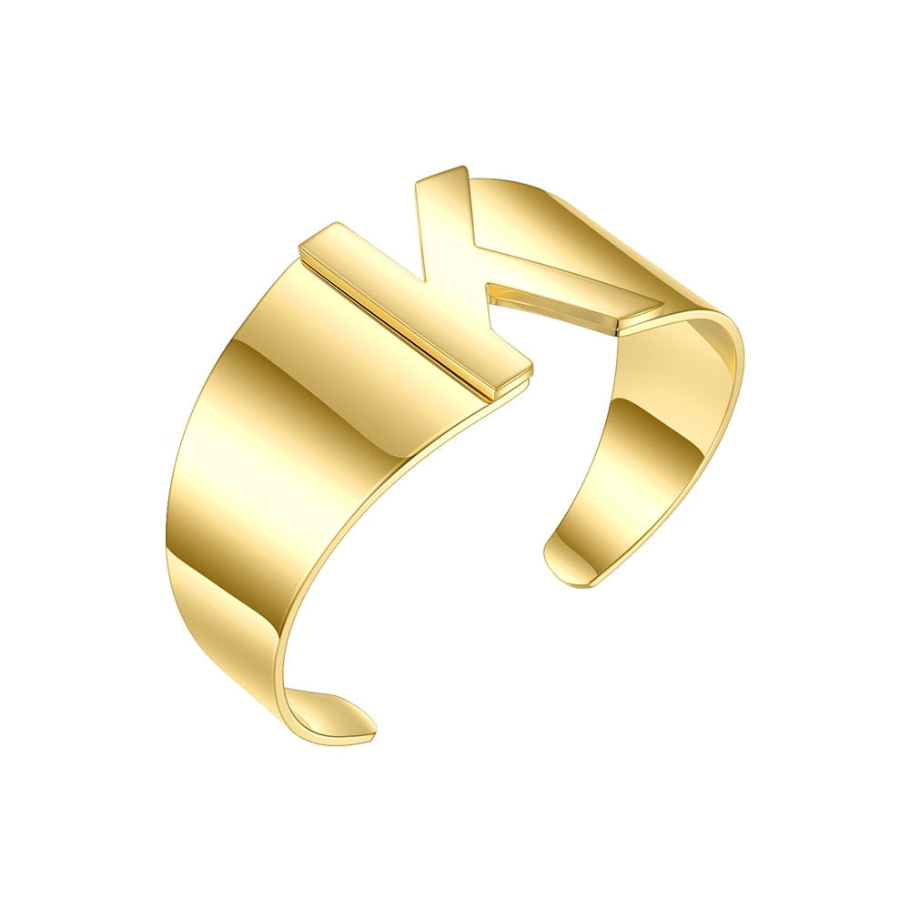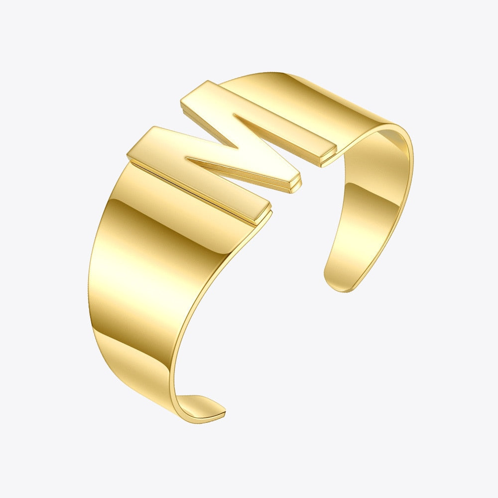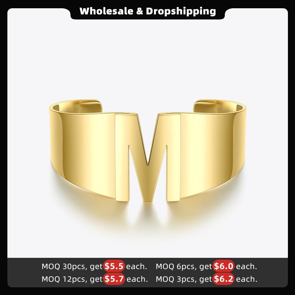 ENFASHION Initial Letter Bangles For Women Hollow Alphabet Open Bracelets Stainless Steel Gold Color Fashion Jewelry Gifts B2163