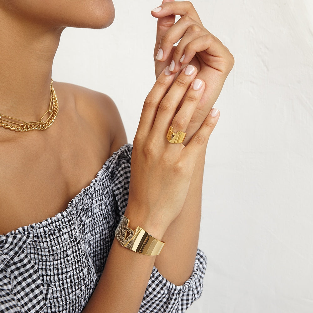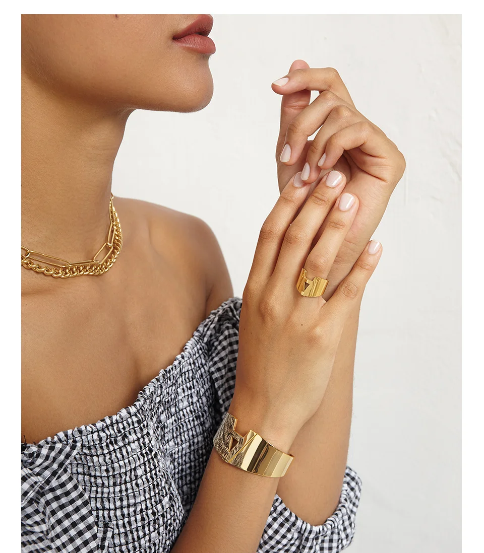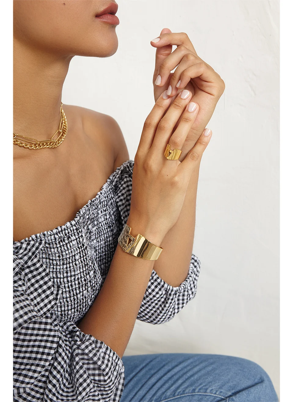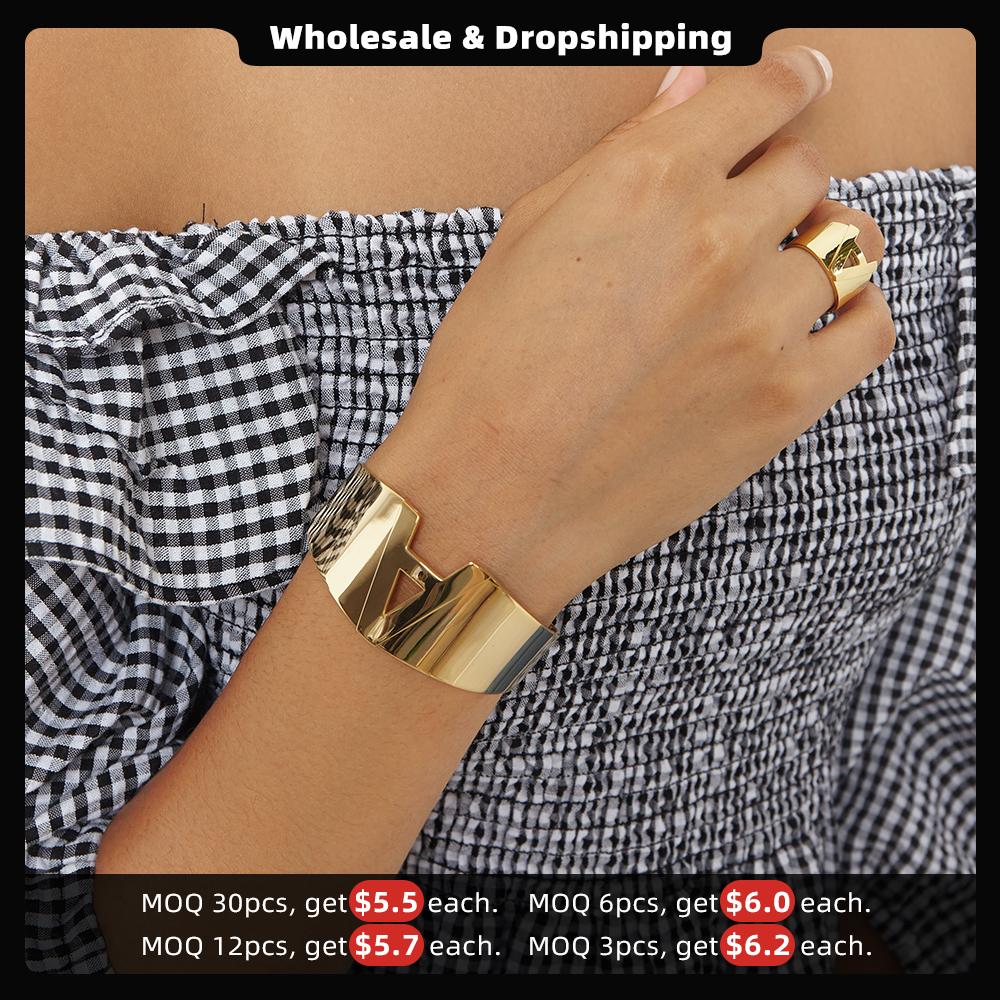 ENFASHION Initial Letter Bangles For Women Hollow Alphabet Open Bracelets Stainless Steel Gold Color Fashion Jewelry Gifts B2163