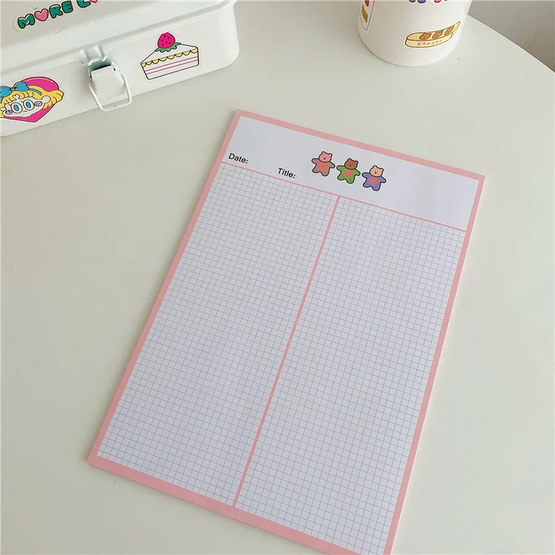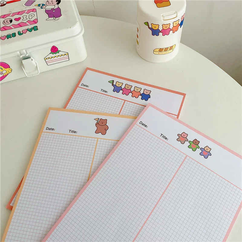 Korean Ins Cartoon Cute colorful Bear B5 Notebook 30 Sheets Kawaii Student Learning Notes Paper diary Hand Account Stationery