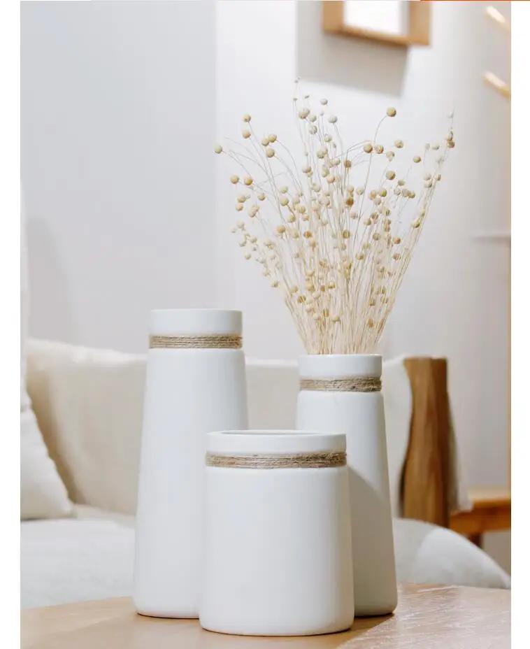 Modern Ceramic Vase Ornaments Home Livingroom Dried Flower Figurines Crafts Office Coffee Table Flower Arrangement Decoration