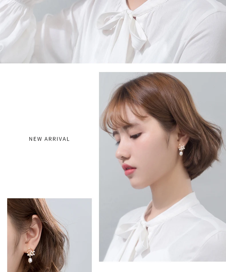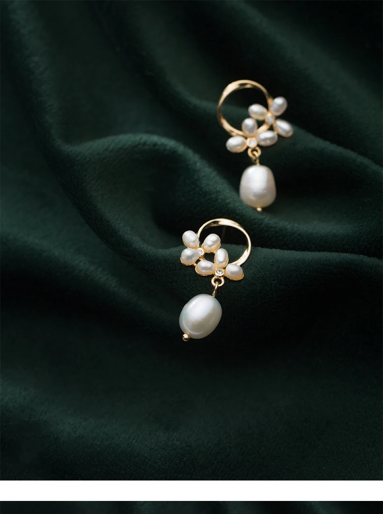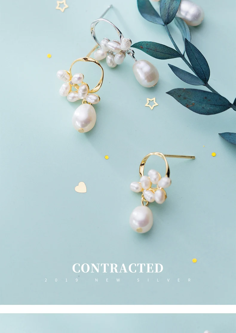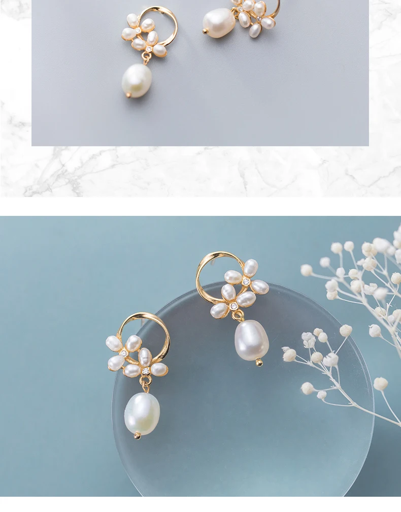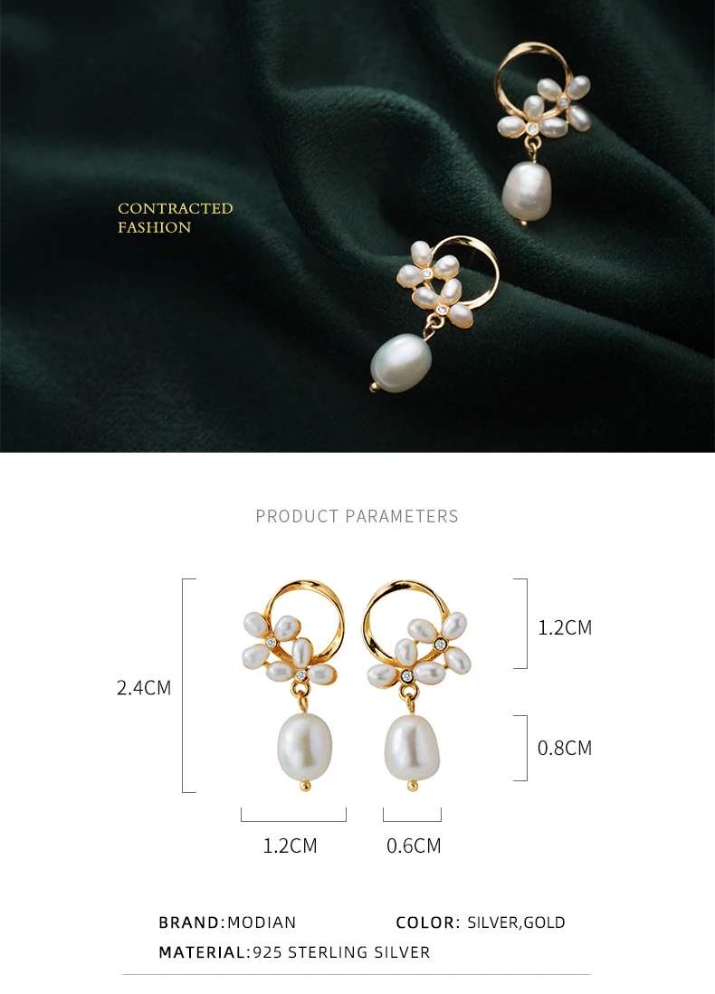 Modian Authentic 925 Sterling Silver Pearl Flower Shape Earring for Women Luxury Gold Color Hoop Earring Fine Jewelry Brincos
