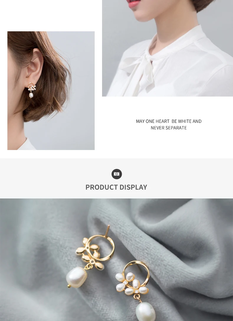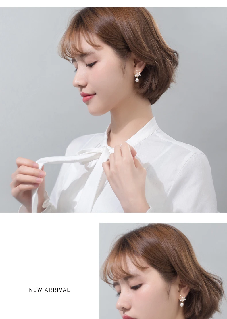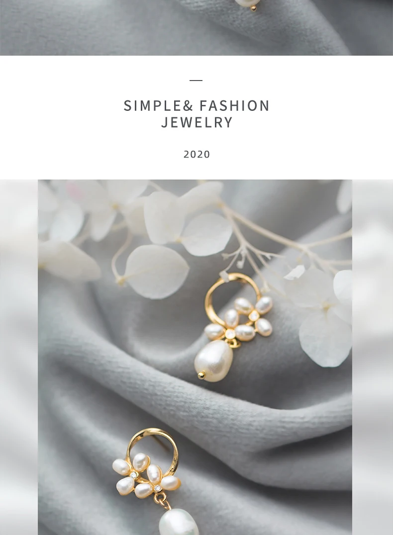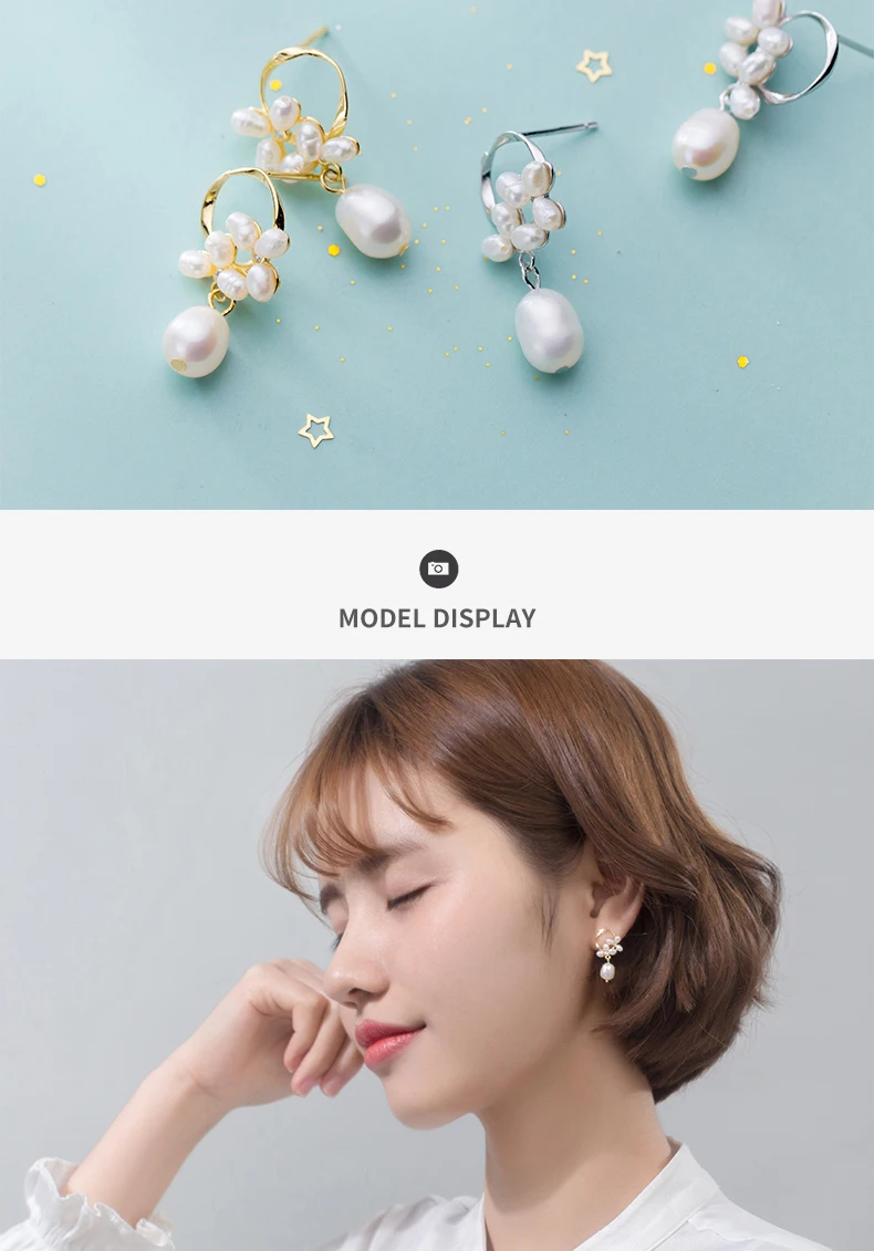 Modian Authentic 925 Sterling Silver Pearl Flower Shape Earring for Women Luxury Gold Color Hoop Earring Fine Jewelry Brincos