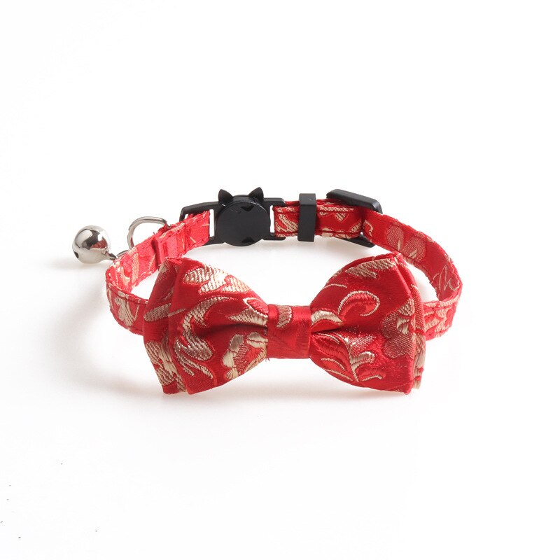 Retro Printing Pets Cat Collars Cute Bowknot Puppy Chihuahua Necklace Adjustable Bow Tie Cat Bells Collar Pet Gift