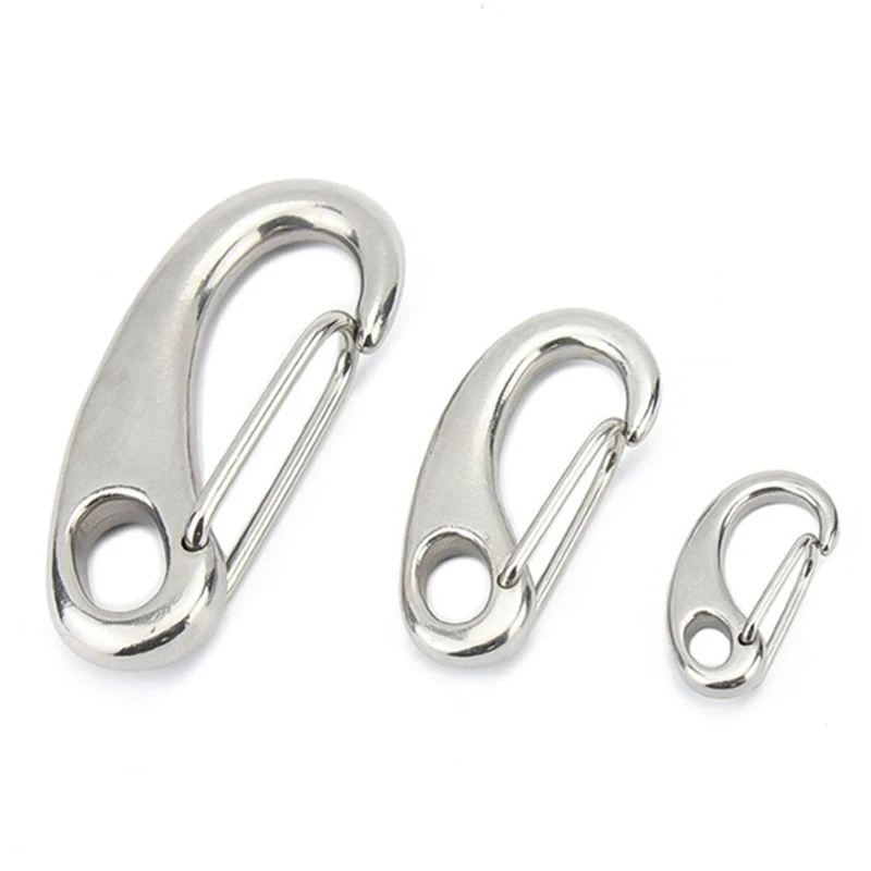 1-10pcs Length 30/40/50/70/100mm 304 Stainless Steel Egg Shape Spring Snap Hook Clip Wire Rope Quick Link Carabiner Boat Marine