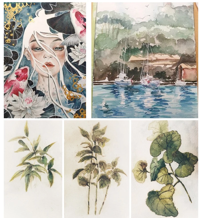 cottom pulp watercolor,watercolor paper is divided into (fine grain,medium grain,coarse grain) Texture clear ,resistant scrub.can be modified ,natural white ,suitable for watercolor painting