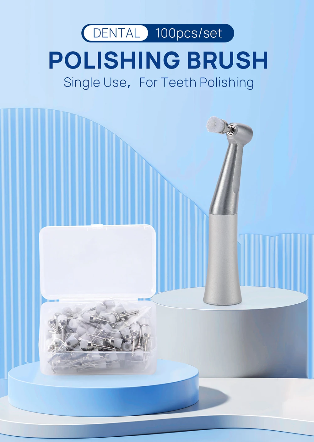 100pcs/Box Dental Polishing Brushes AZDENT Prophy Brush White Nylon Bowl Flat Shape Latch Type RA Polisher Single Use Dentsitry