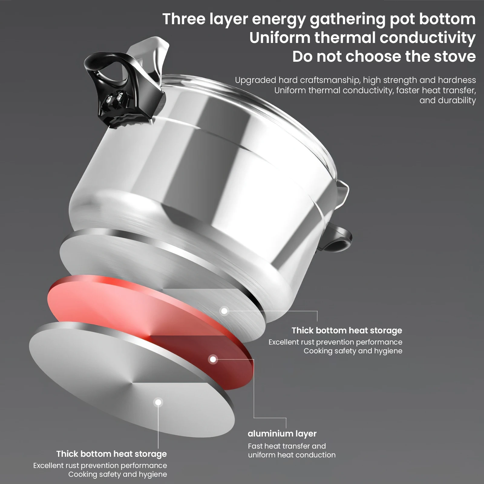 [Double Bottom Design] Equipped with double bottoms, it can evenly distribute pressure, ensuring uniform and fast cooking, saving you valuable time.