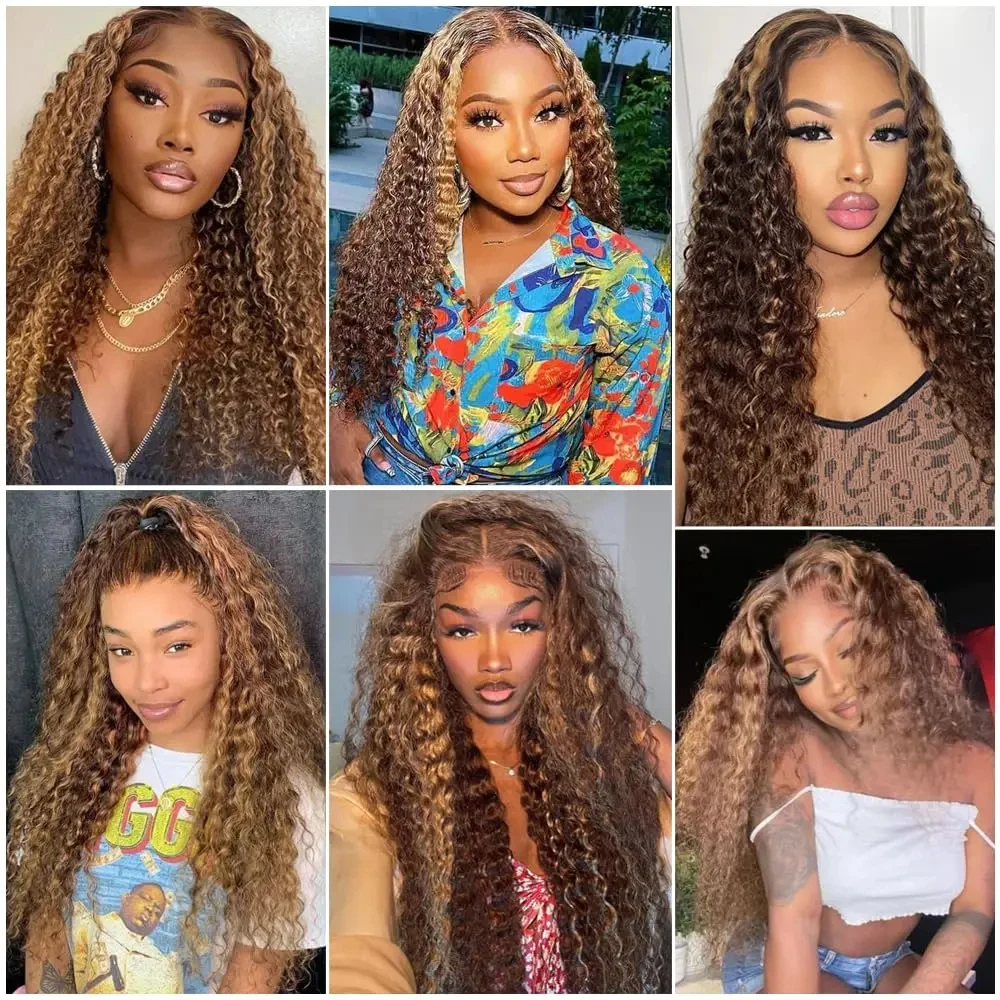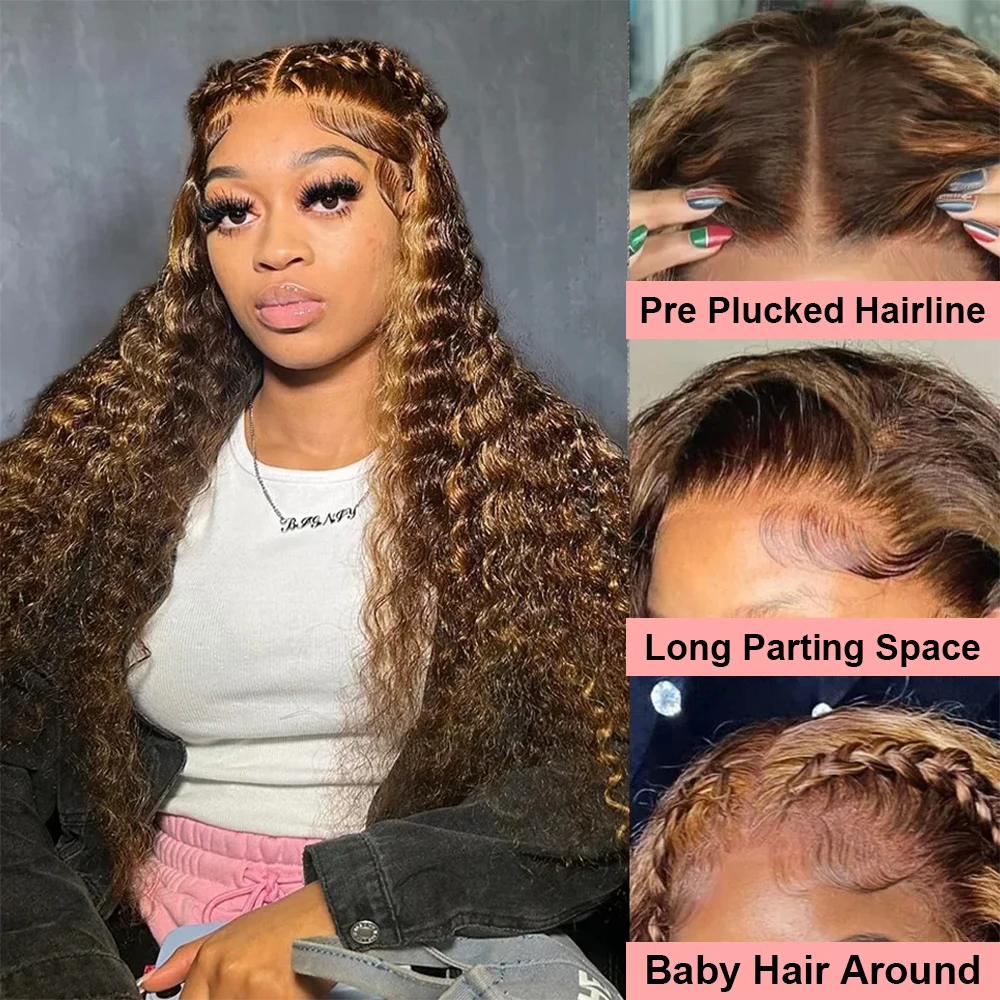 4/27 Highlight Curly Glueless Wigs Human Hair Ombre Colored Deep Wave 7x5 Lace Closure Wig Human Hair Wigs Pre Cut Ready To Wear