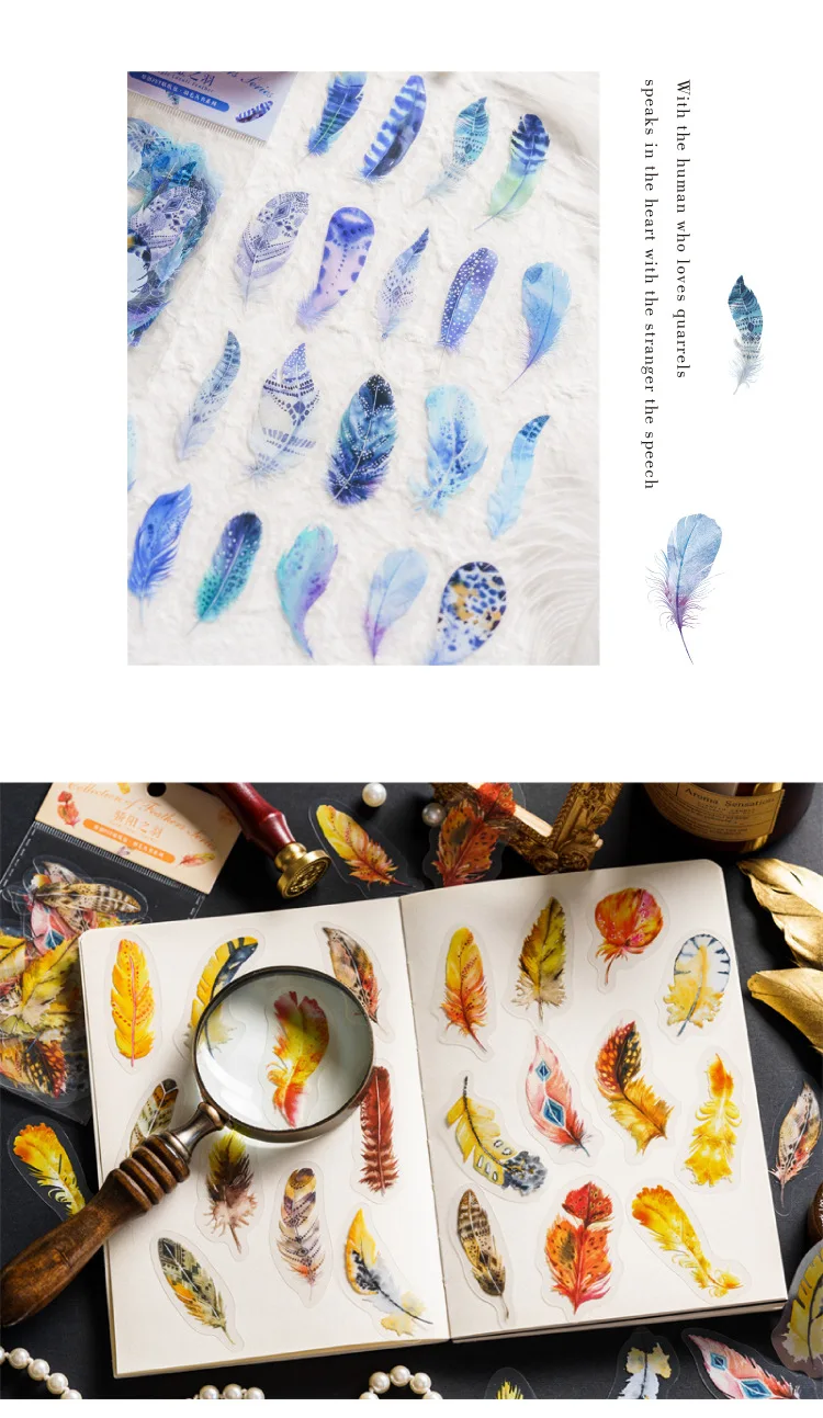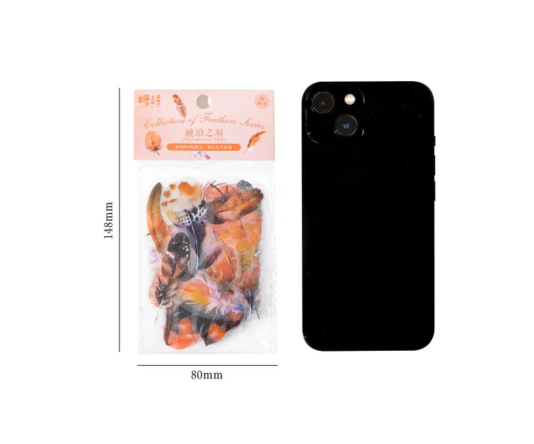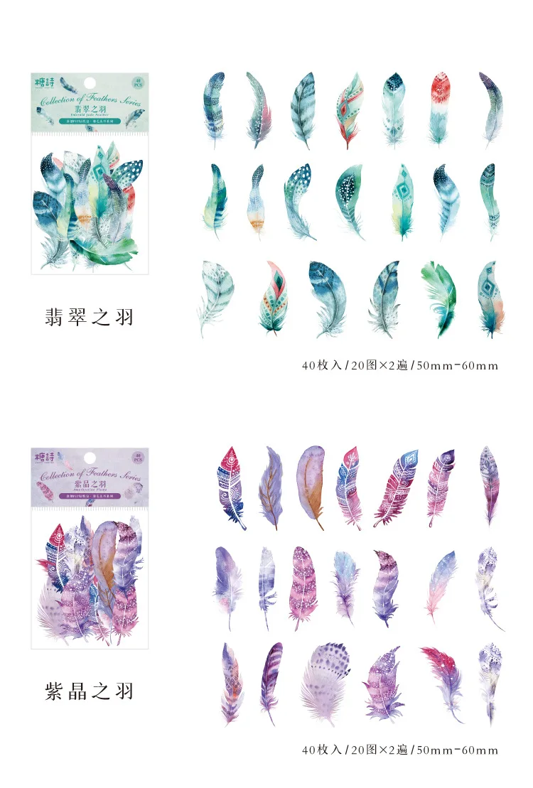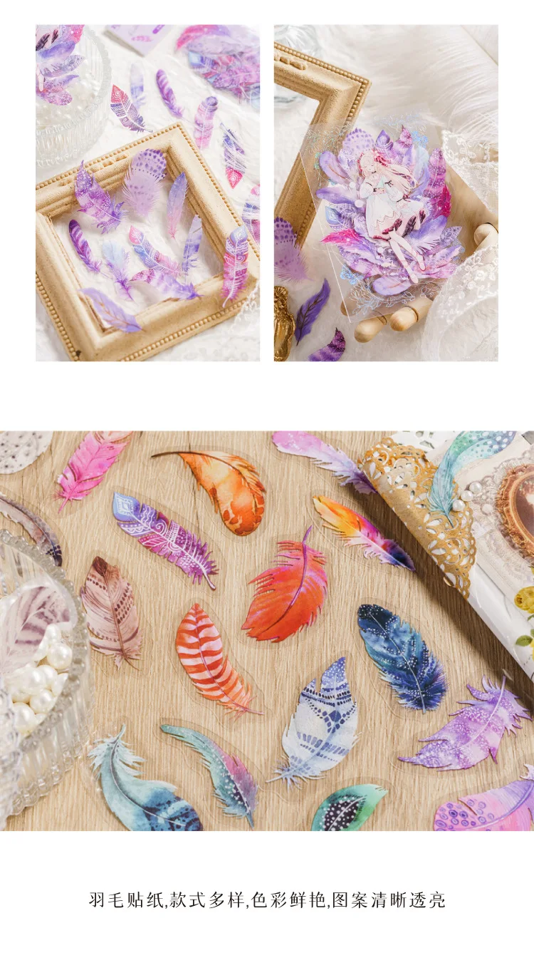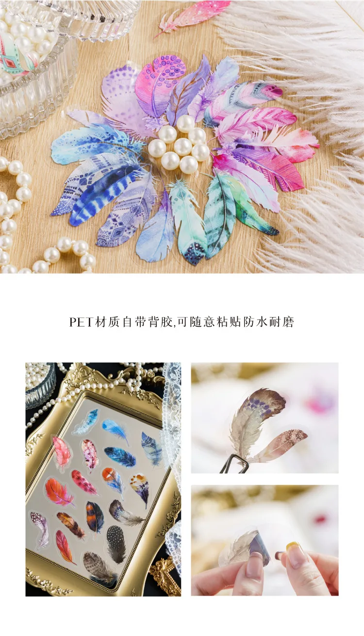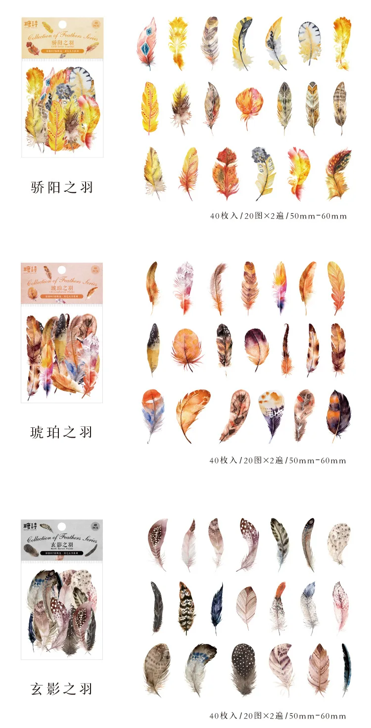 40pcs/pack PET Materials Feathers Series Stickers DIY Scrapbooking Collage Junk Journal Deco Vintage Sticker Stationery