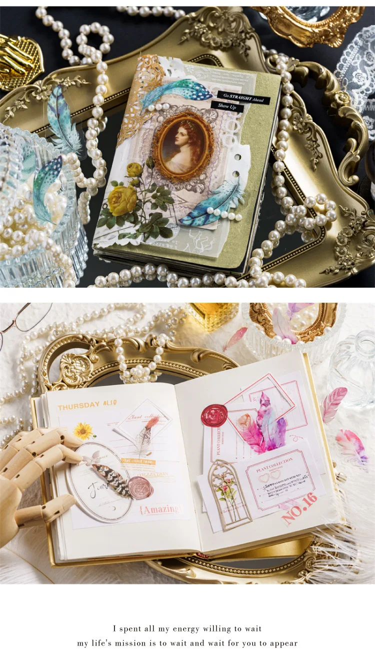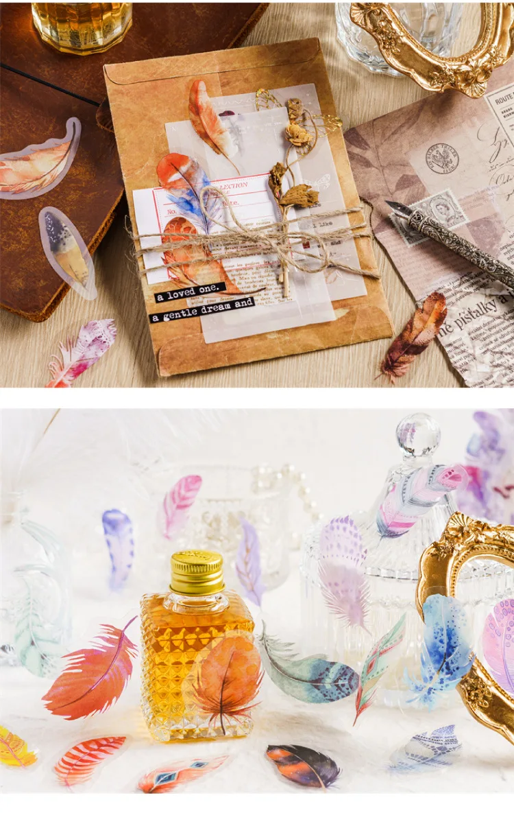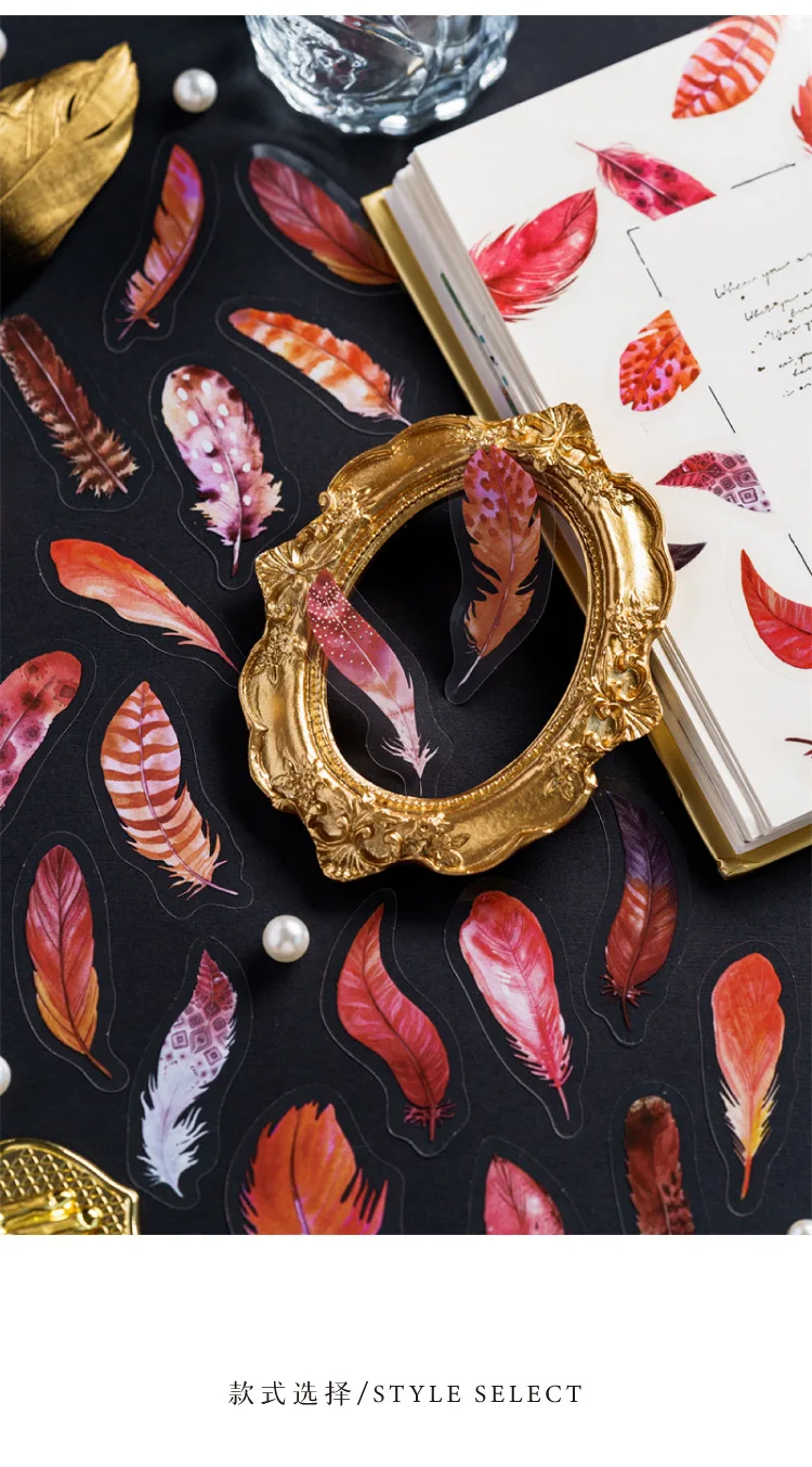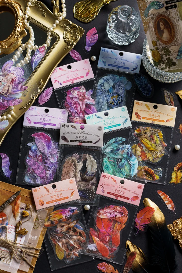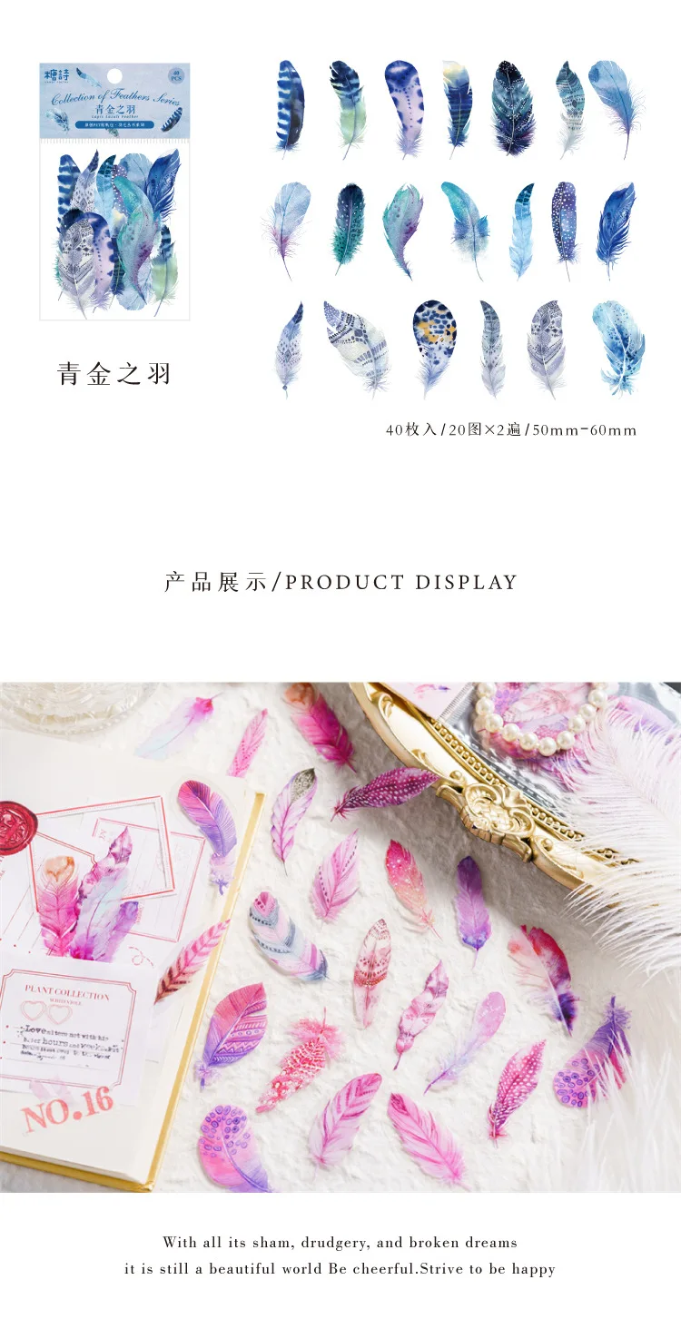 40pcs/pack PET Materials Feathers Series Stickers DIY Scrapbooking Collage Junk Journal Deco Vintage Sticker Stationery