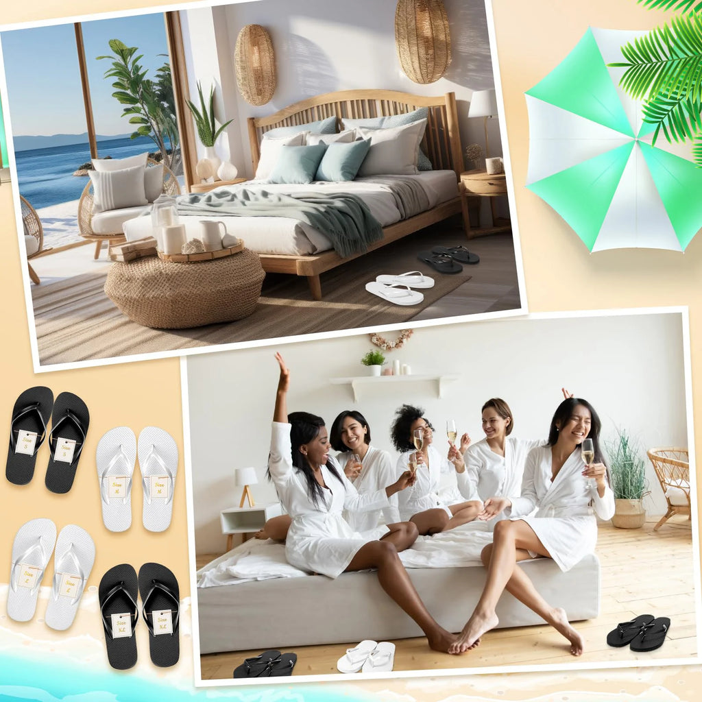 Make your event unforgettable with our wholesale flip flops, perfect for daughters' weddings reception favors, vacations, resorts, spas, pool parties, baby showers, cruises, parties, beaches, vacations, or around the dance floor for a party, sandals shoes for guests