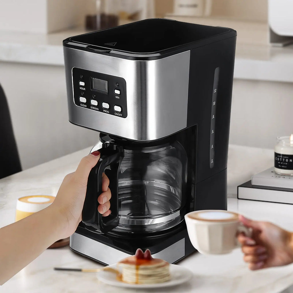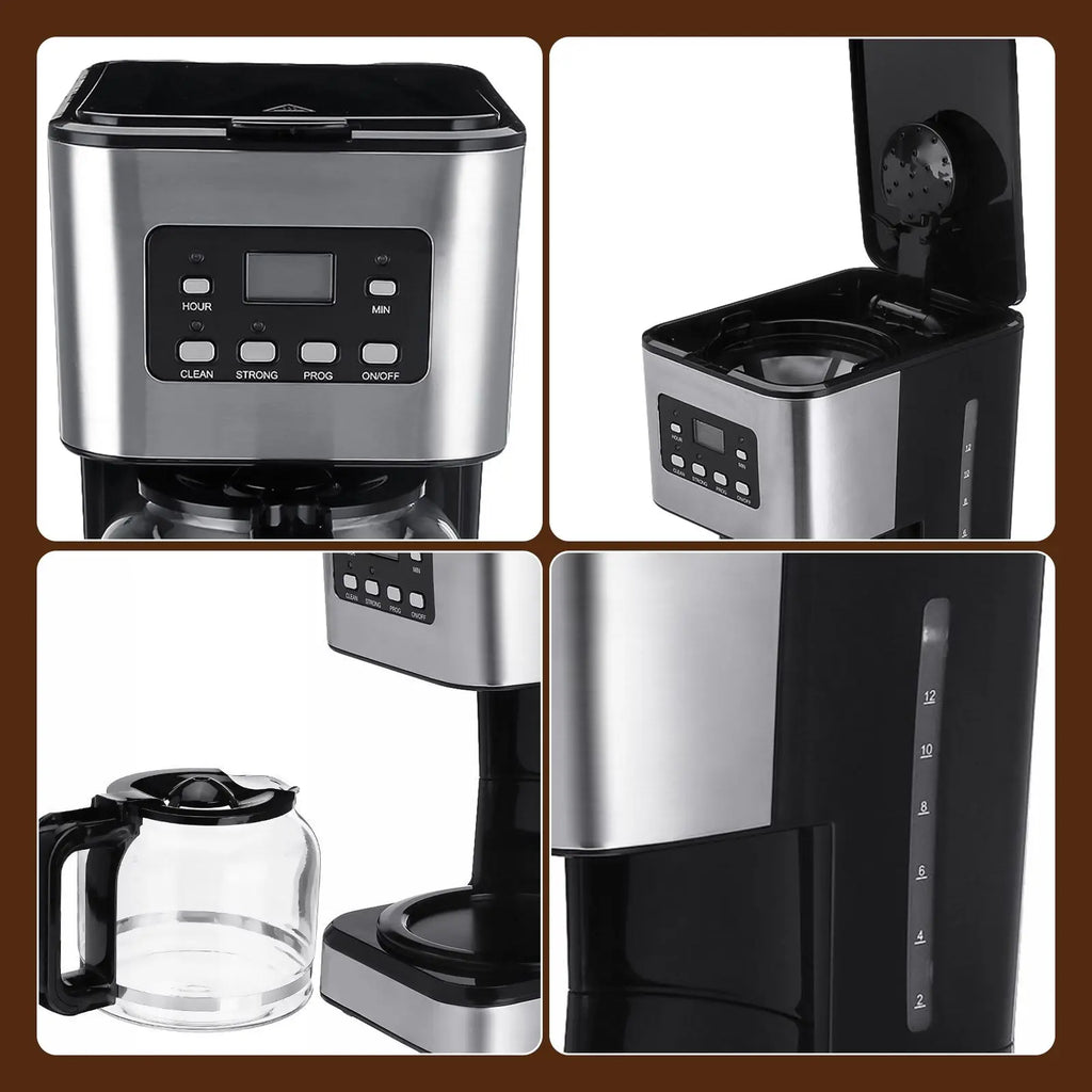 950W Automatic Coffee Machine 12 Cups Stainless Steel Coffee Machine Kitchen Drip Coffee Grind Machines