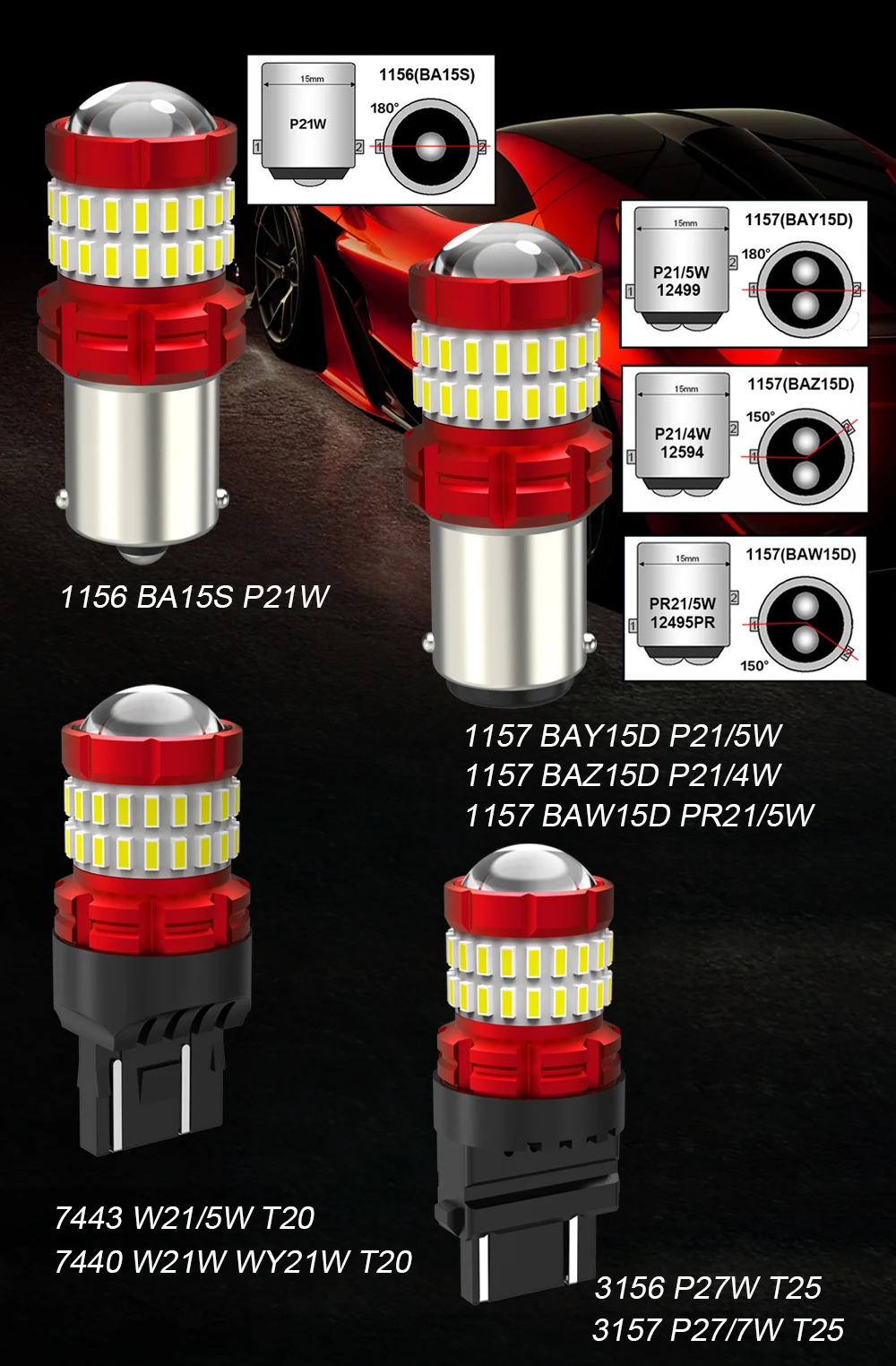BMTxms 2x Car LED Light P21W 1156 BA15S 1157 P21/5W BAY15D T20 W21W 3157 P27 5W Auto Brake Lamp Reversing Daytime Running Lights