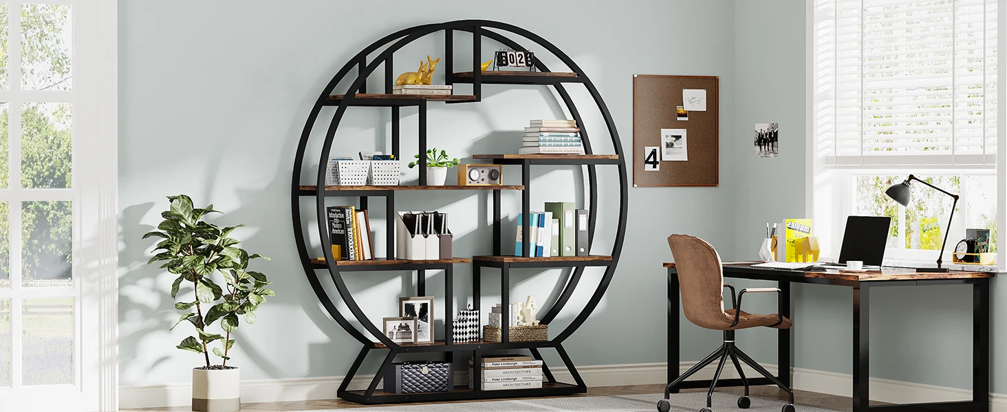 Framed by sturdy metal tubes, ensuring sturdiness, stability and strengths for the bookshelves.
