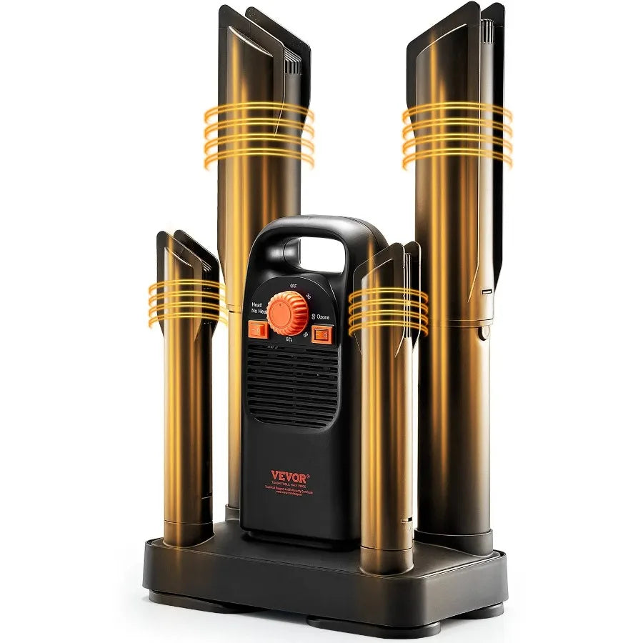 Detachable 4-Tube Shoe Dryer with Timer and Quick Drying Black and Orange
