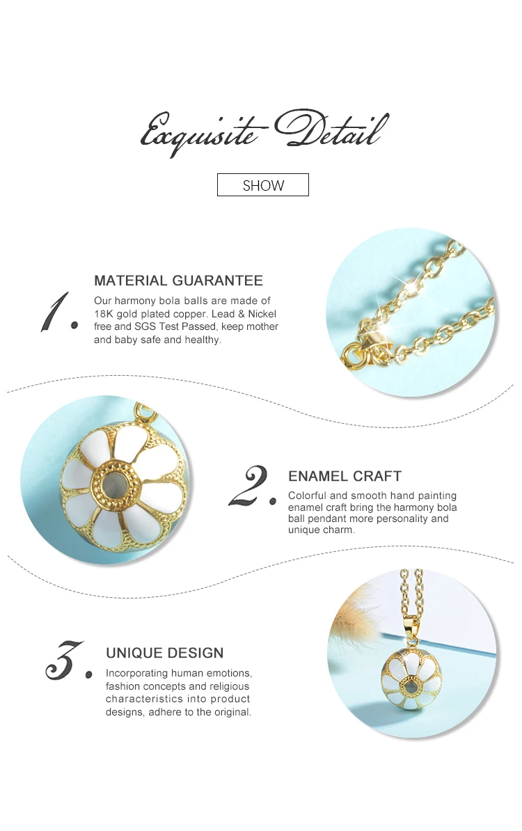 Original design Enamel Craft Flower Harmony Pregnancy Bola Ball Necklace Angel Caller Pregnancy Chime Ball Pendant for Women Fine Jewelry pregnancy gift new mom gift
