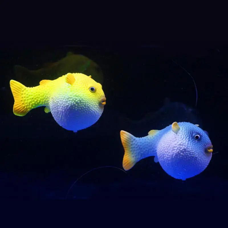Fish Tank Decoration Artificial Luminous Small Puffer Aquarium Fluorescent Ornaments Rubber Simulation Puffer Aquatic Ornaments