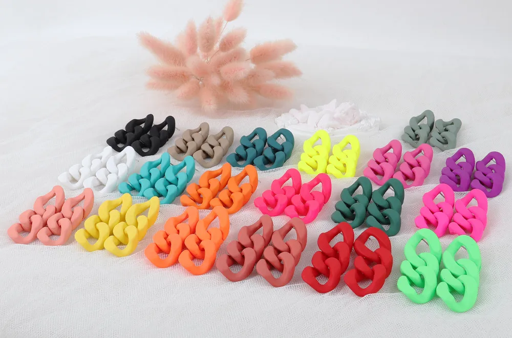 FishSheep Colorful Acrylic Chain Drop Earrings For Women Bohemian Simple Design Link Long Earrings New Fashion Party Jewelry