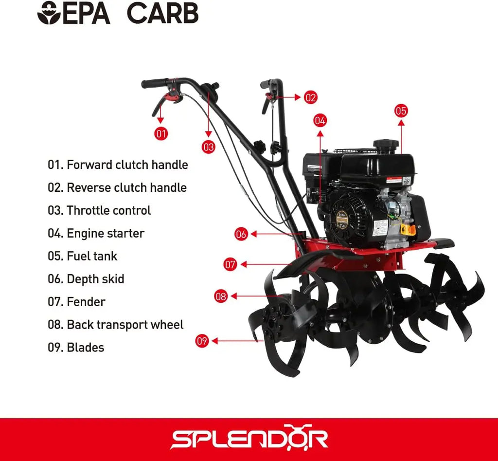 Comfortable Work - The Handles Of The Machine Are Ergonomically Attached For Effortless Work. The Hand Tiller Is Agile And Easy To Maneuver. This Power Tiller Designed With Both Forward And Reverse Speed, More Convenient For You To Move The Machine