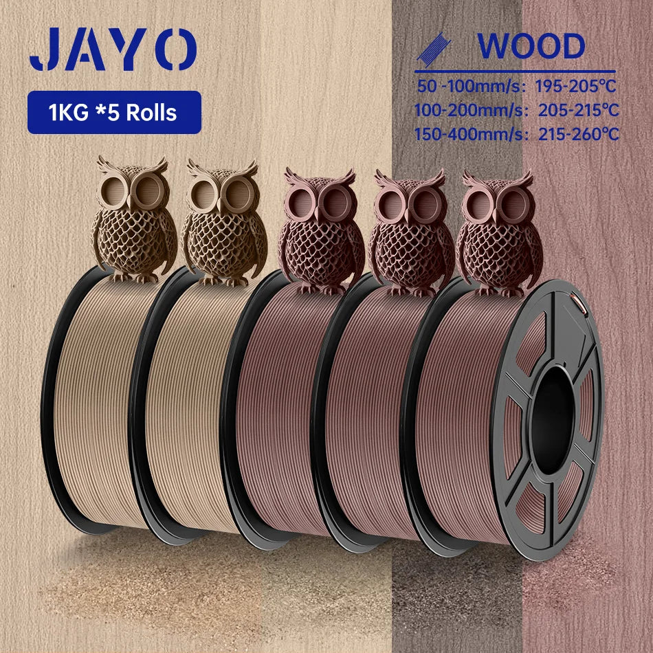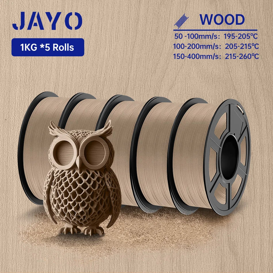 Engineered with a ±0.02 mm tolerance, JAYO pla wood filament ensures smooth feeding and extrusion, preventing clogs. Each roll is dried for 24 hours and vacuum-sealed for superior performance.