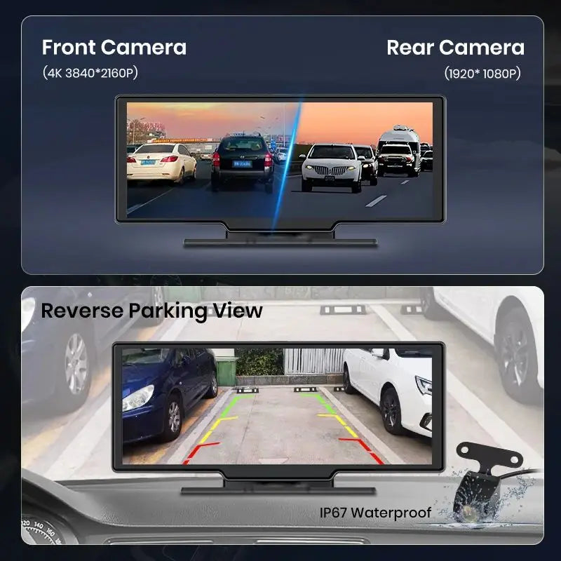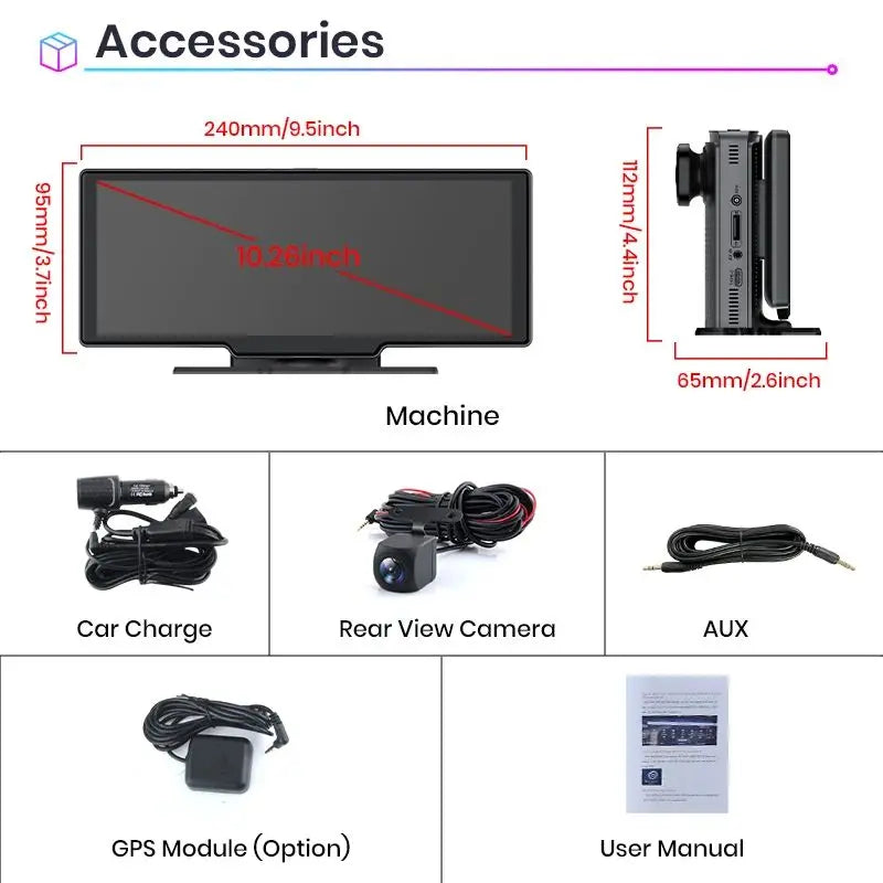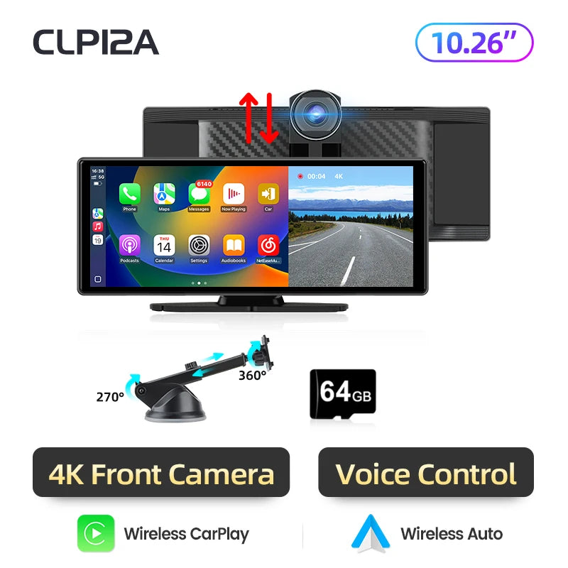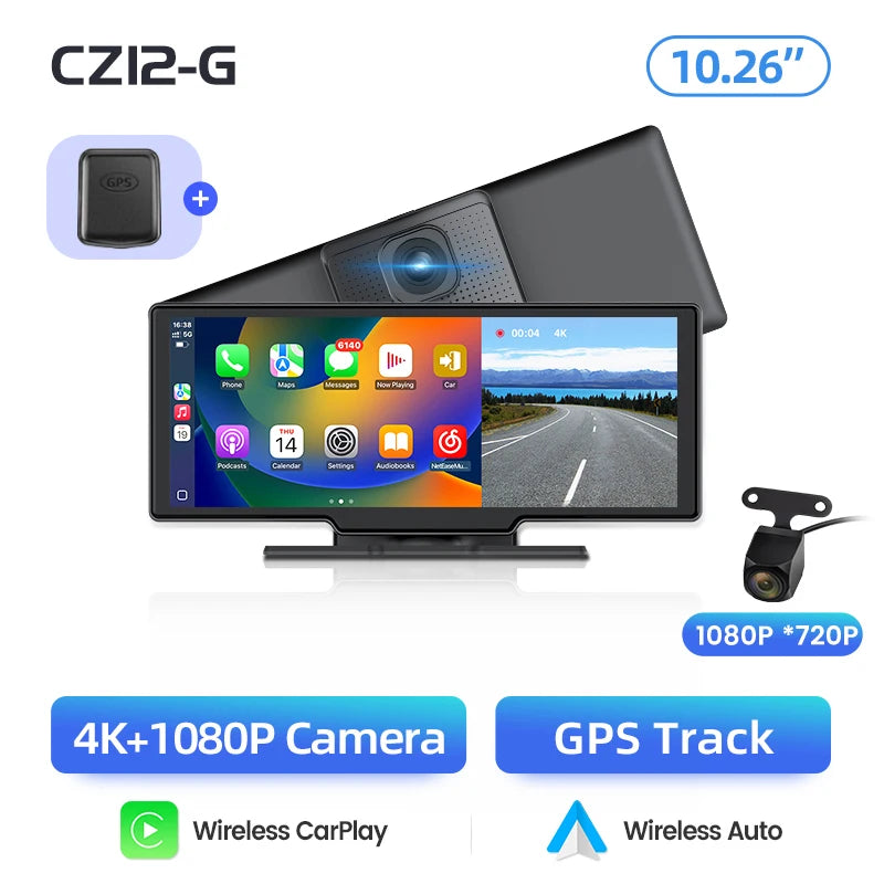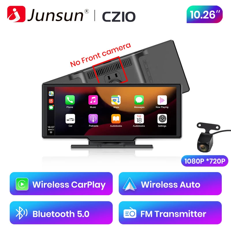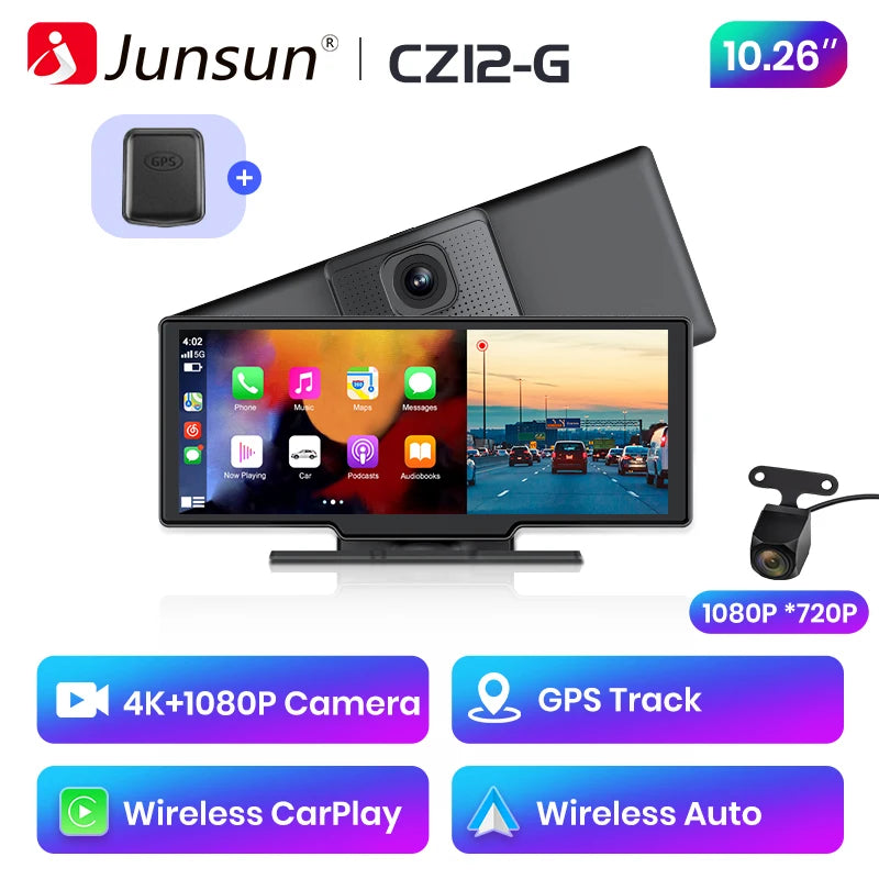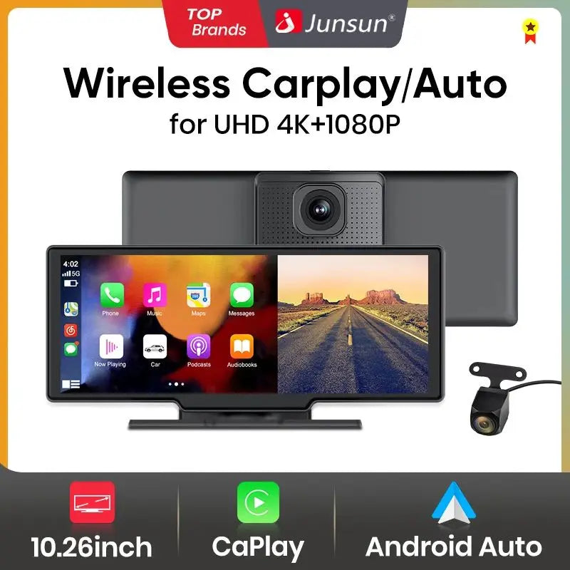 Junsun 10.26 "Wireless CarPlay Android Auto Car Radio 4K Dash Cam Rearview Camera Wifi GPS Navigation Dashboard Video Recorder