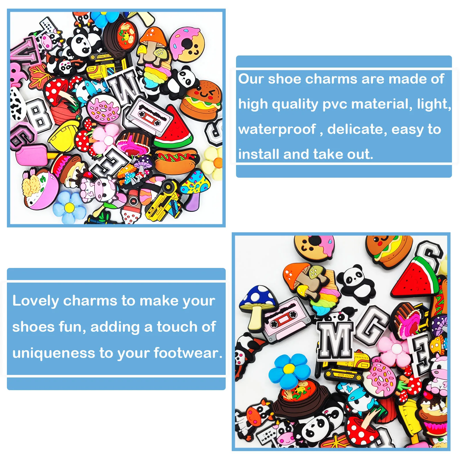 【GOOD QIALITT MATERIAL】- Our shoe charms are made of good quality non-toxic waterproof PVC material. After rigorous testing, they are durable, not easily deformed and not fade.