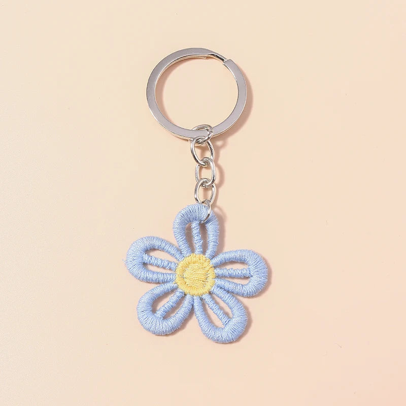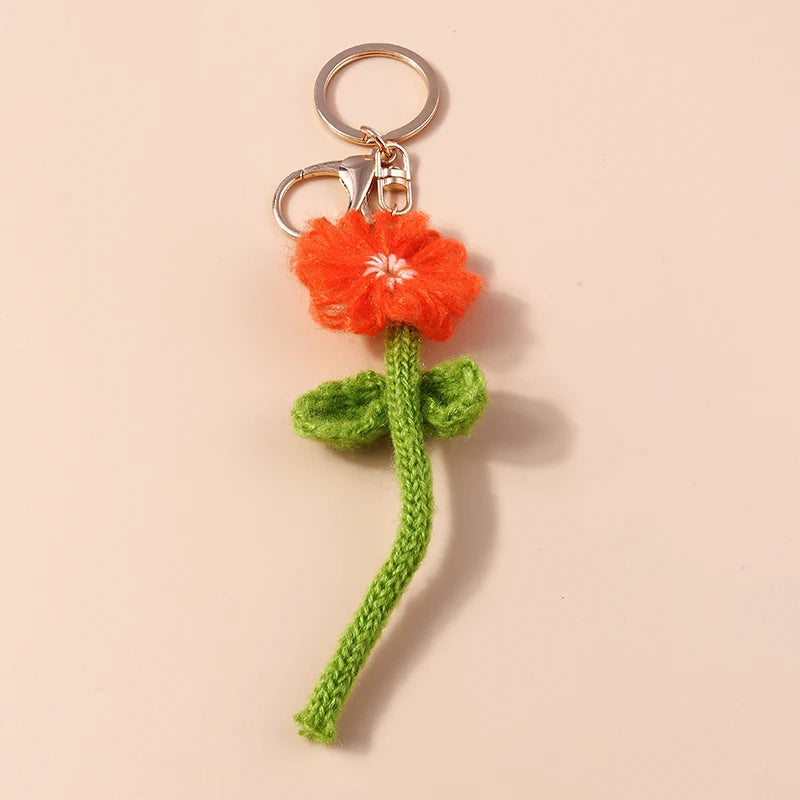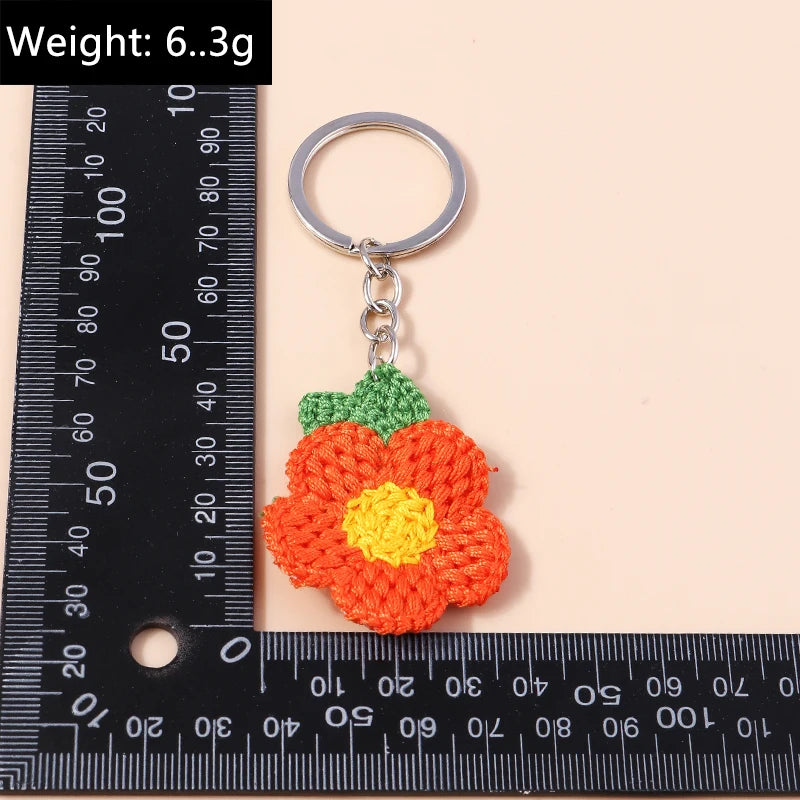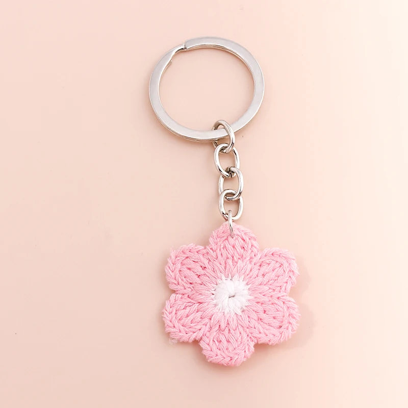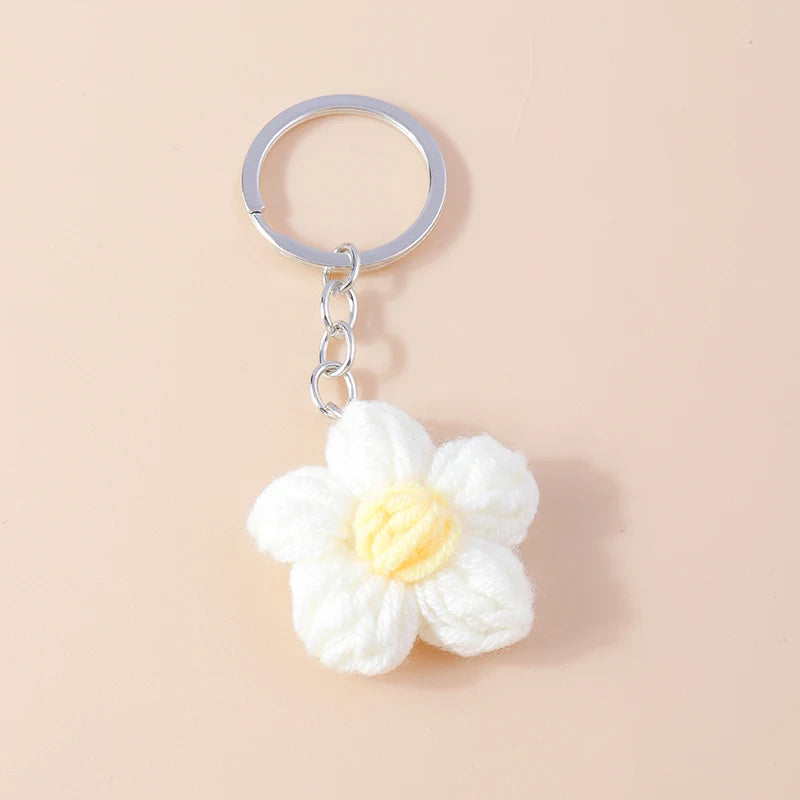 Lovely Handmade Knitted Flower KeychainCrocheted Key Rings for Women Girls Handbag Pendants Charms DIY Jewelry Gifts
