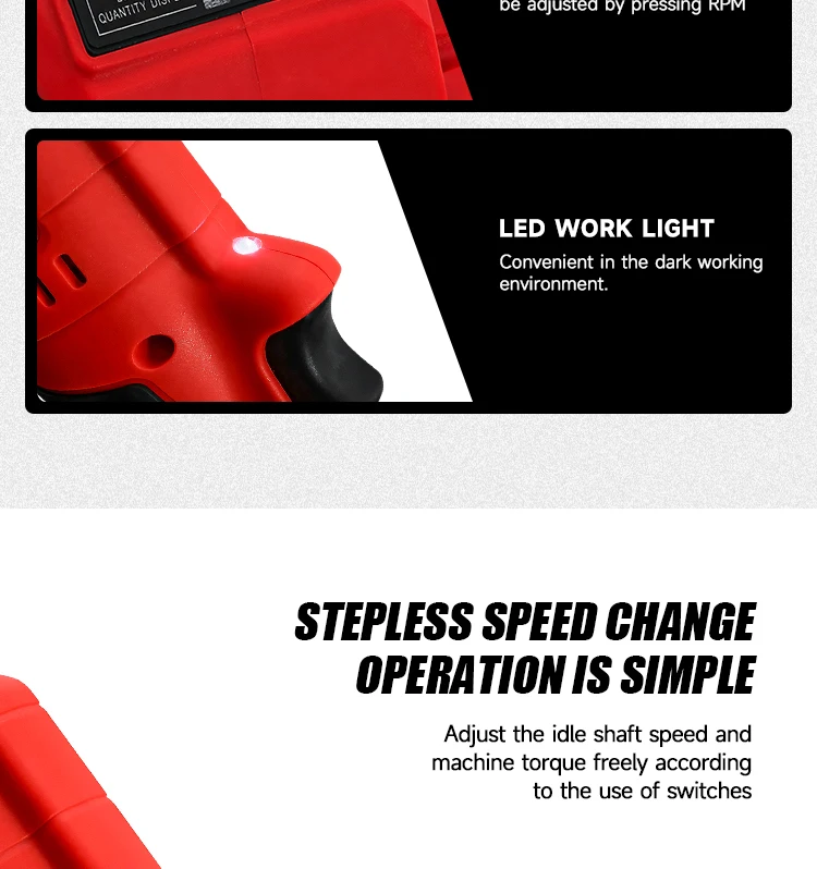 Non-slip soft rubber handle, it will not be tired for long time disassembly. Self-contained LED lighting, large vents to dissipate heat, not easy to heat.