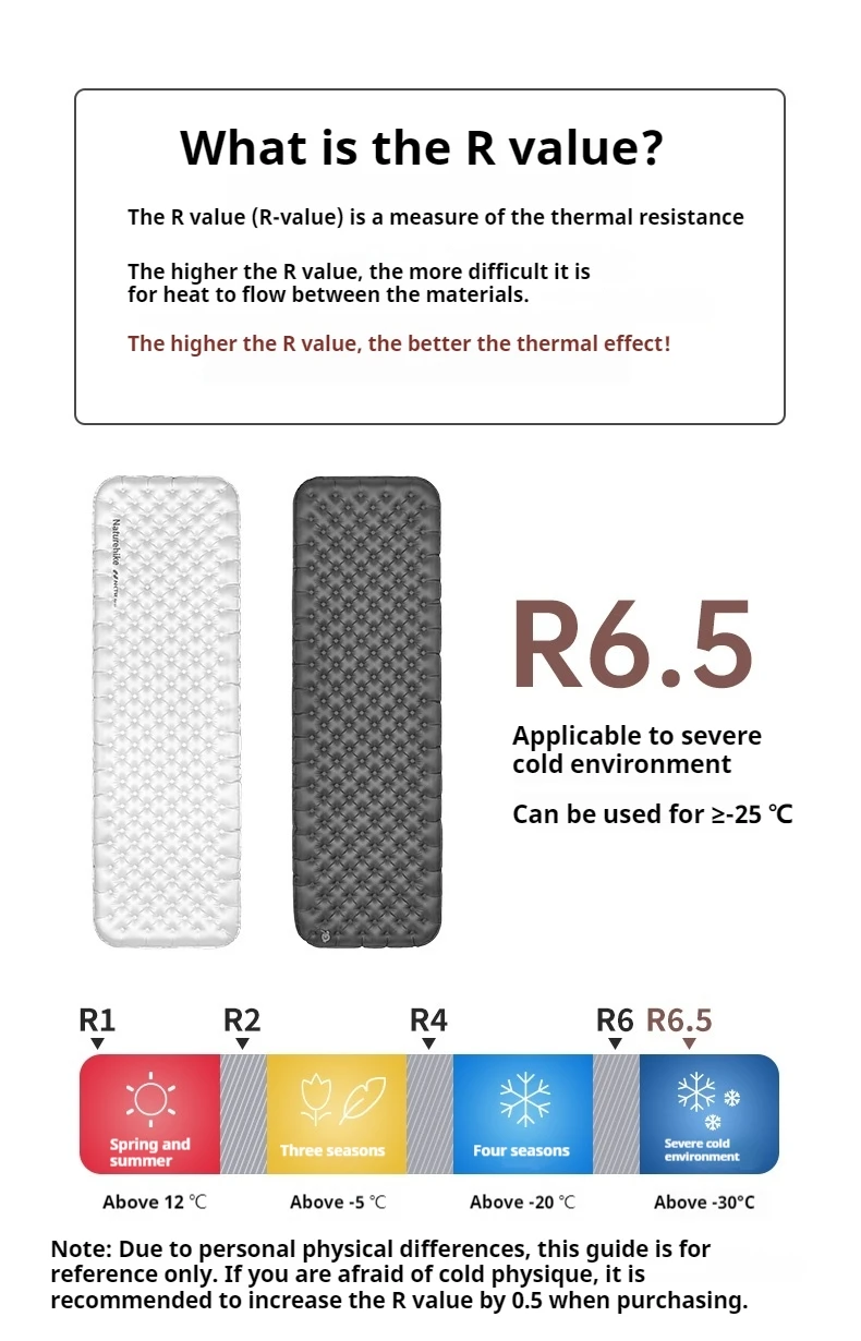Naturehike Camping R6.5 Inflatable Mattress Air Mat Thick Sleeping Pad Ultralight Portable Outdoor Travel Hiking Damp Proof Mat