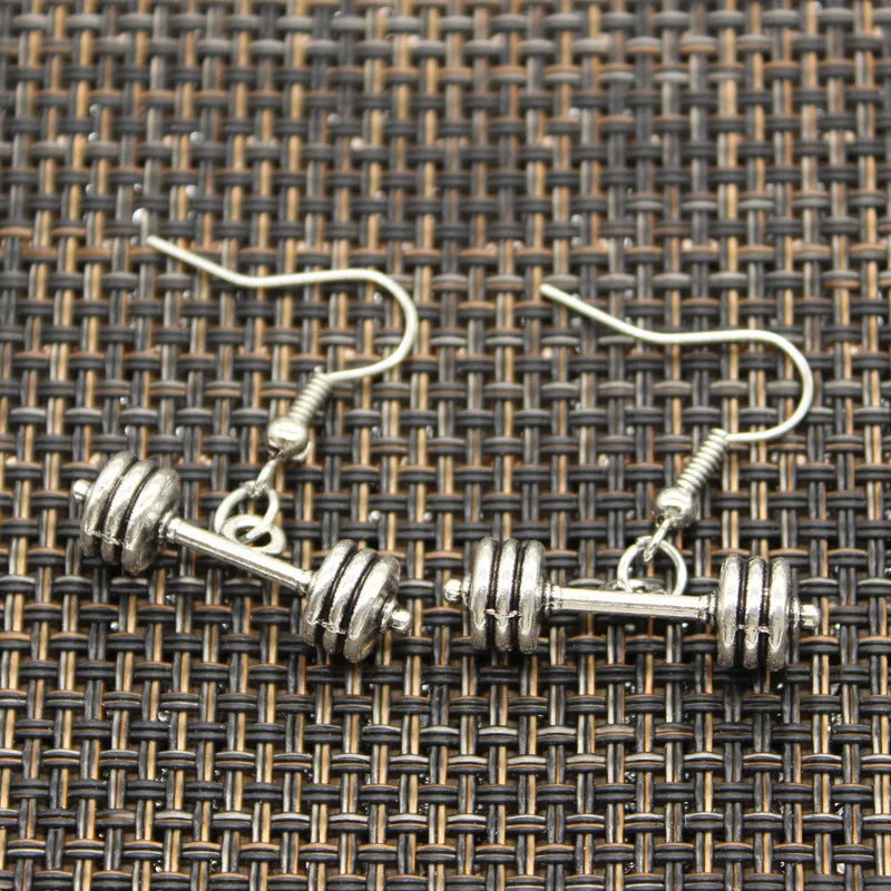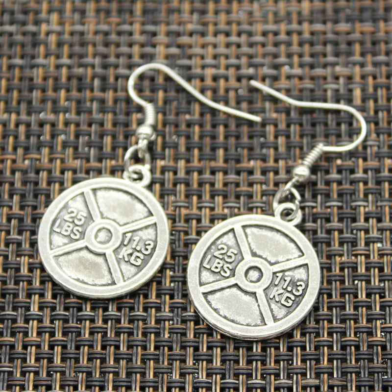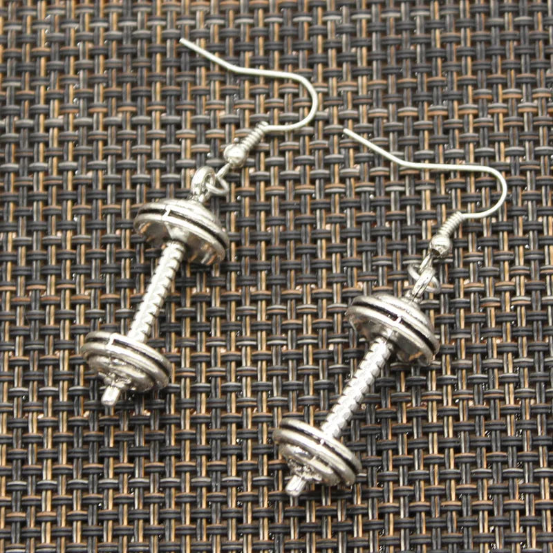 New Fashion Handmade Fitness Equipment Dumbbell Disc Pendants Silver Color Earrings For Womens Style