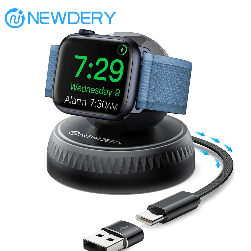 2024 Upgraded Portable Wireless Magnetic Charger Stand: This portable charging dock stand is compatible with Apple Watch Series 10/9/8/7/6/5/4/3/2/1, SE, and Ultra 2/1. Its compact design features a retracting cable, making it easy to fit into bags or pockets.