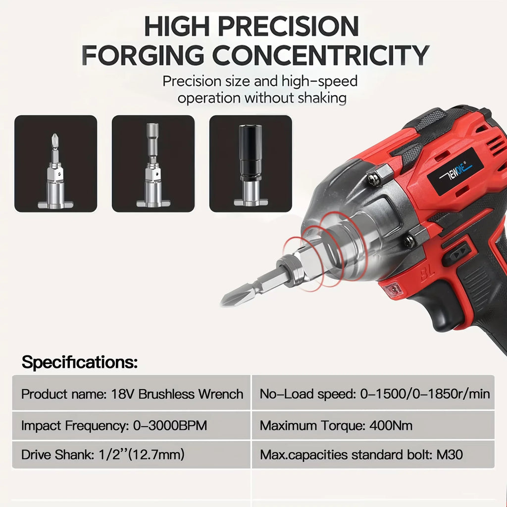 NEWONE 18V cordless Impact Wrench, Impact wrench kit, brushless 400Nm torque impact driver and battery charger