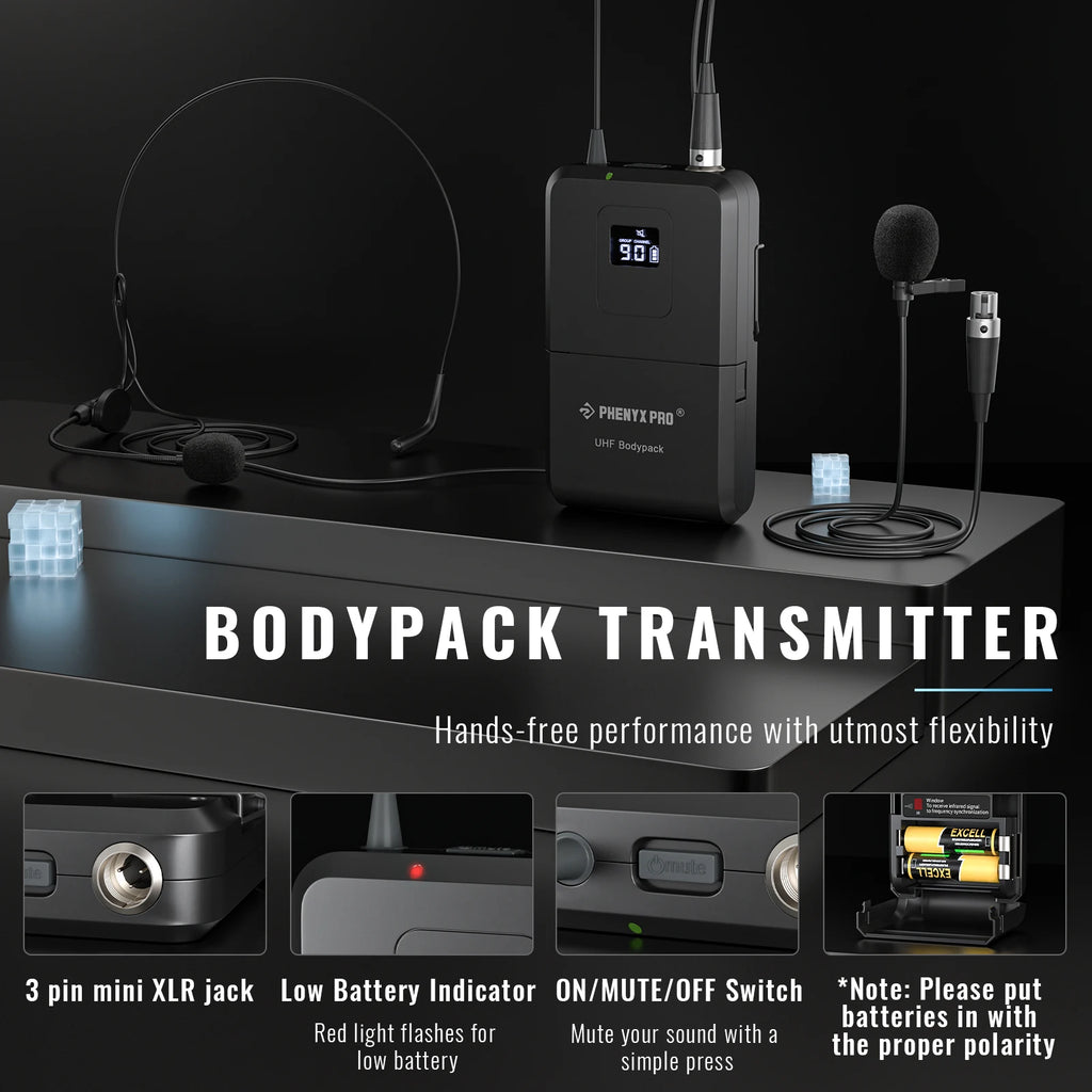 Sturdy metal builds for the wireless receiver and quality build for bodypack transmitters. The beige flesh toned color of the wireless headsets and lavalier mics enable great invisibility and professionalism during the performance. The mic cartridge is engineered for clear robust optimal true sound. Multichannel feature with 4x40 channels, enables users to select different frequencies when preset frequency fails, thus ensuring reliable performance