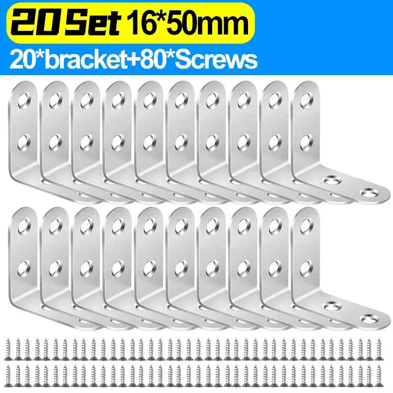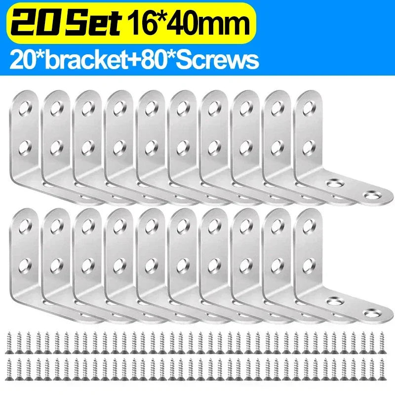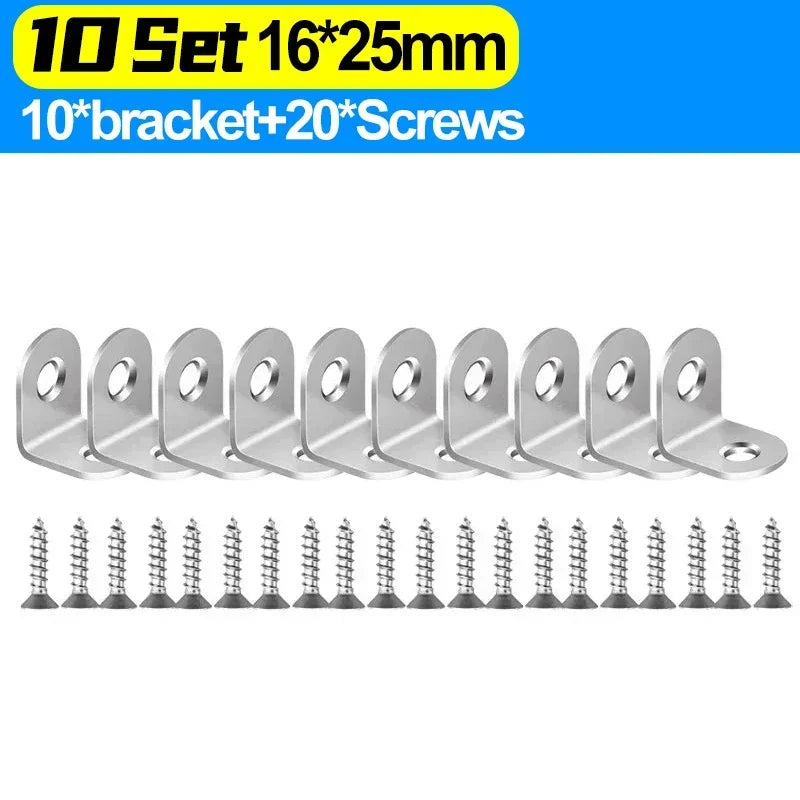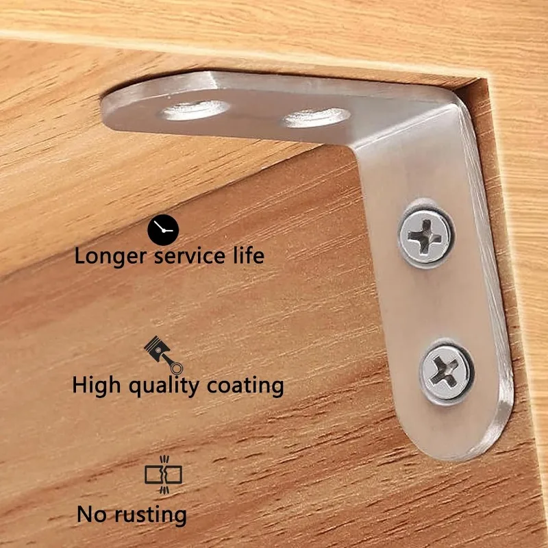 Stainless Steel Corner Bracket L Right Angle Connector Brackets Furniture Cabinet Fastener Corner Brace Shelf Support with Screw