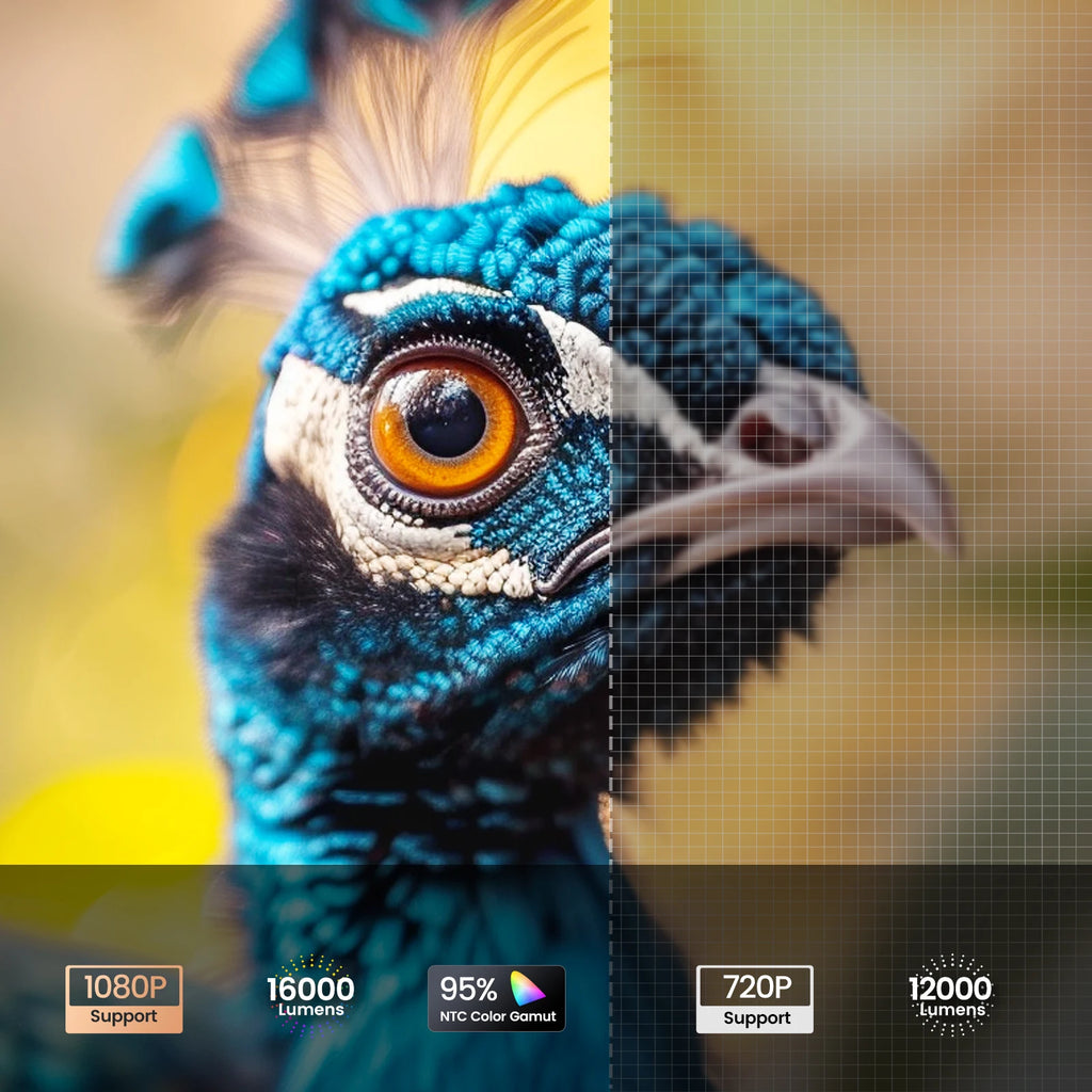 【Projector Supports 1080P with Latest Technology】The mini projector adopts the latest NTSC color technology, with the most advanced brightness processing chip and heat dissipation technology, which increases the lumens to 16000L, enhanced high contrast ratio of 20000:1, ensures excellent image quality and more vivid colors, makes you experience the cinema version on a large screen of 40 to 250'' (recommended projection distance 1.5m-4m)