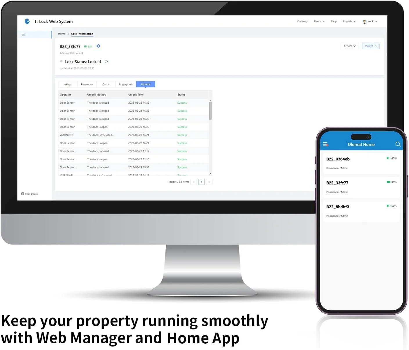 [Locks Management] Manage all locks seamlessly through the smart app and web portal using the same login credentials for easy access.