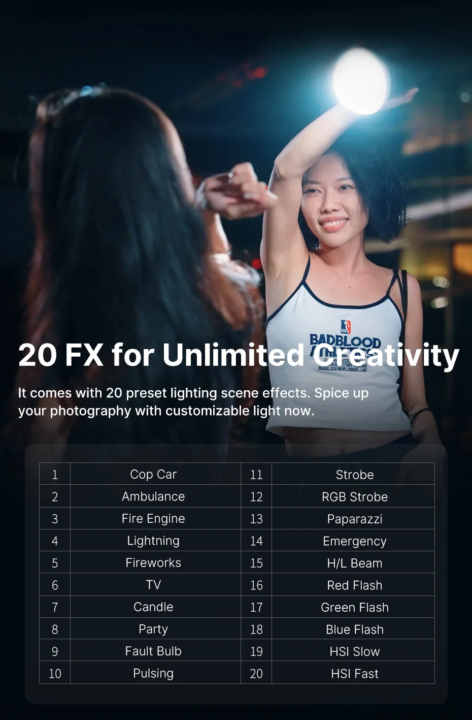 Ulanzi L024 40W RGB Full Color COB Video Light Mini Bowens Mount COB Light 2500-6500K 3400mAh LED Video Light for Photography