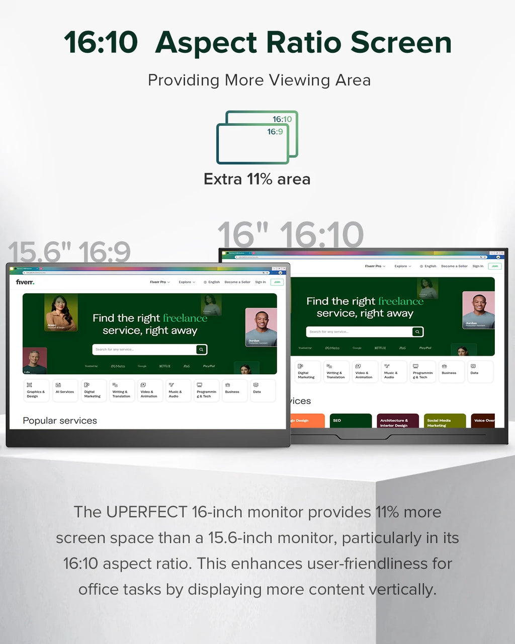 UPERFECT 2.5K Portable Monitor 16" 2560x1600 HDR Display 350nits 8bit QHD USB-C HDMI Laptop External Second Screen For Mac PC