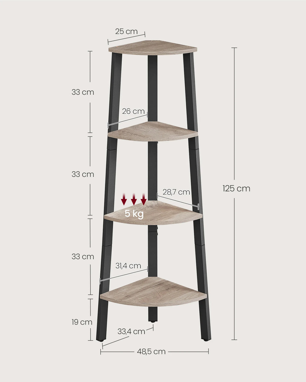 - Capacité de charge statique maximale par niveau : 5 kg