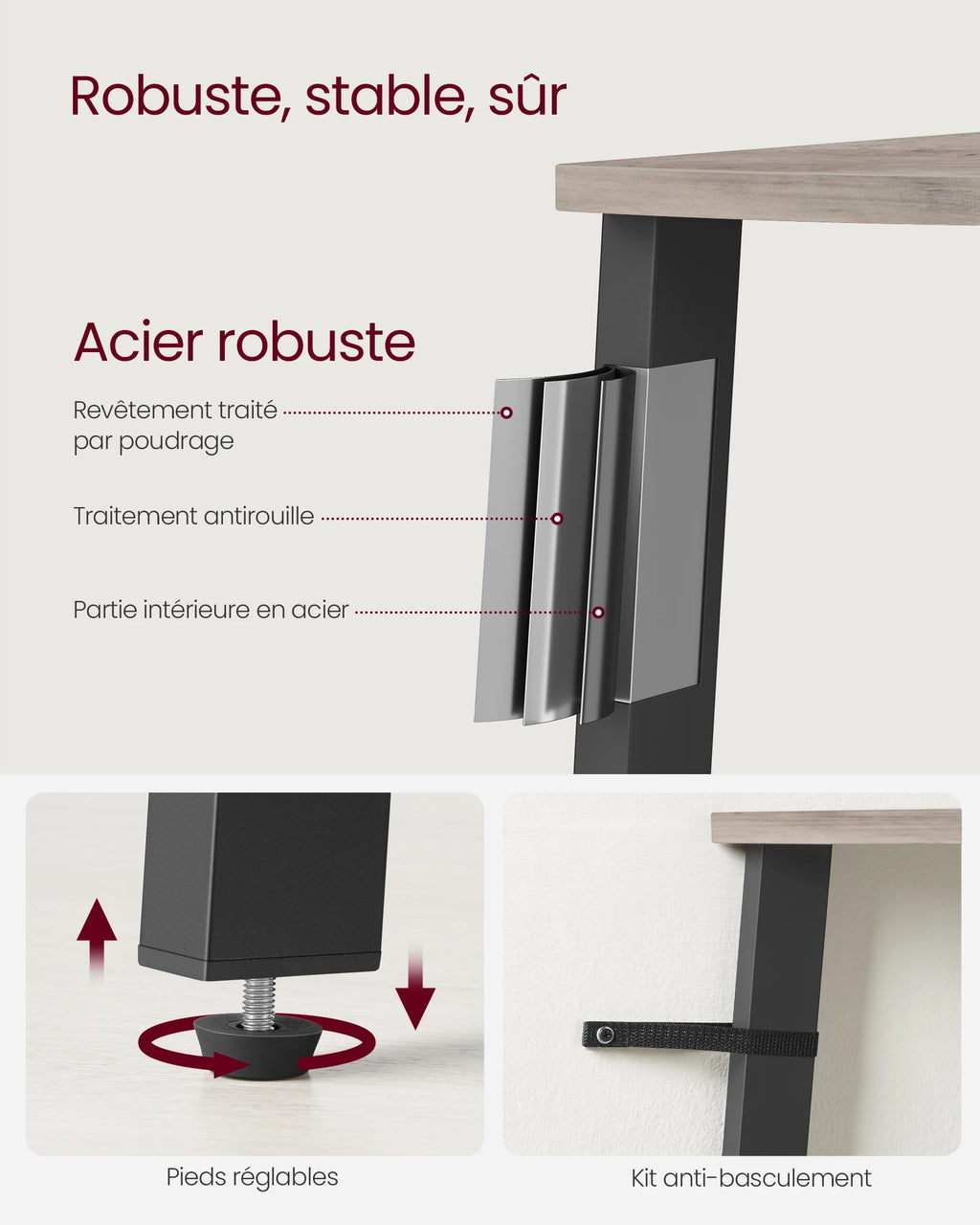 - Matériaux : Panneaux d’aggloméré,acier