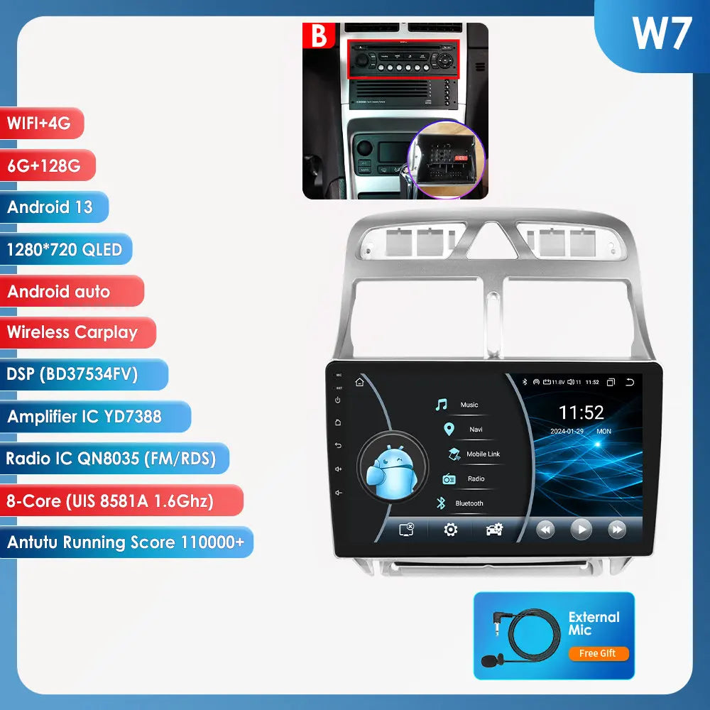 The radio has a built-in RDS function, especially for European users, it automatically selects the stable frequency of the radio station being listened to, Receive more stable radio station, Less radio noise, Higher performance during driving and displays the information of the radio station on the radio