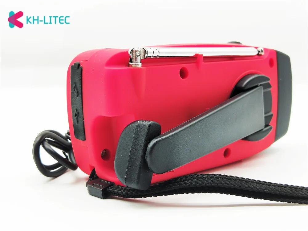 Mehrere Möglichkeiten, das Radio mit Strom zu versorgen/aufzuladen: Handkurbel zum Aufziehen der internen Lichtmaschine,