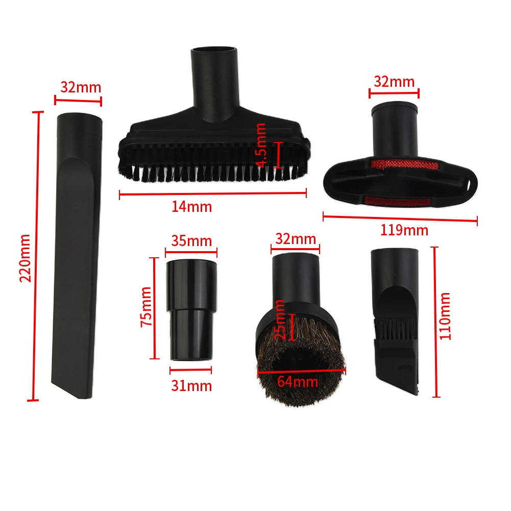 * Plastic 6 in 1 vacuum cleaner nozzle set for 32mm or 35mm kit of floor brush and nozzles cleaning tool