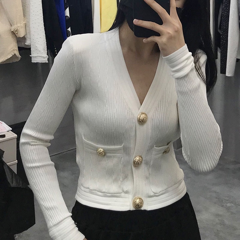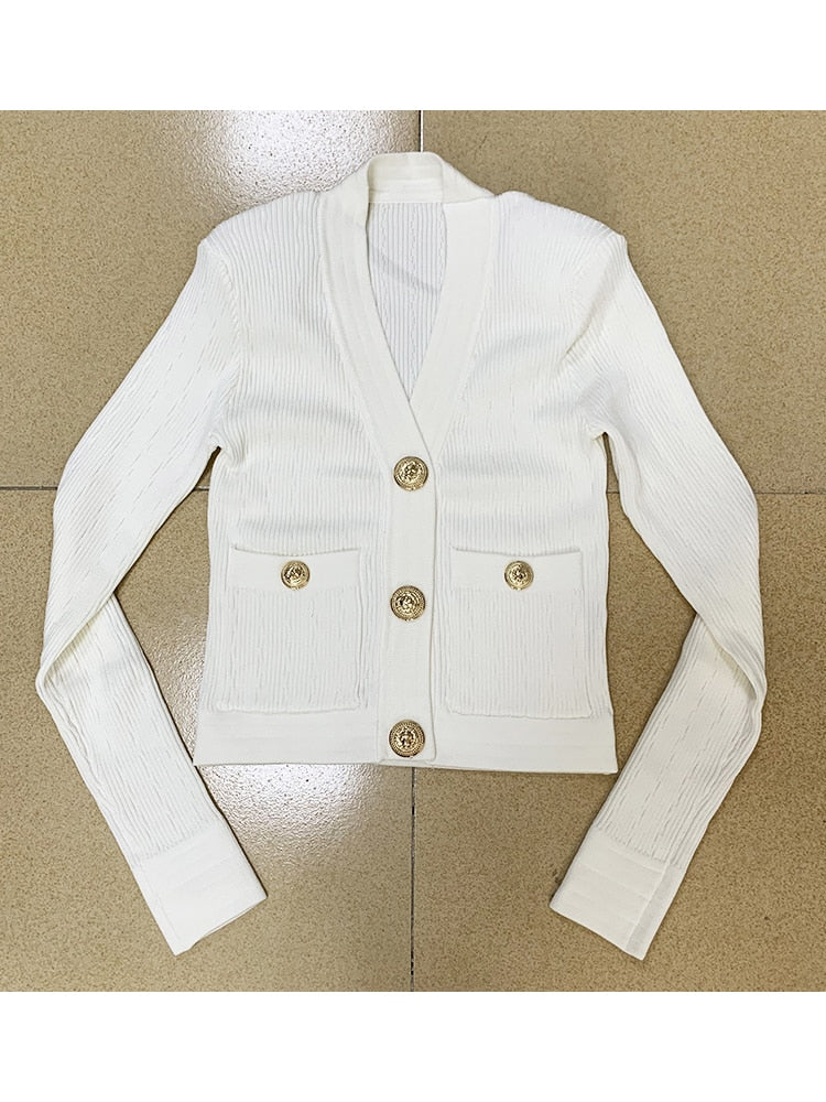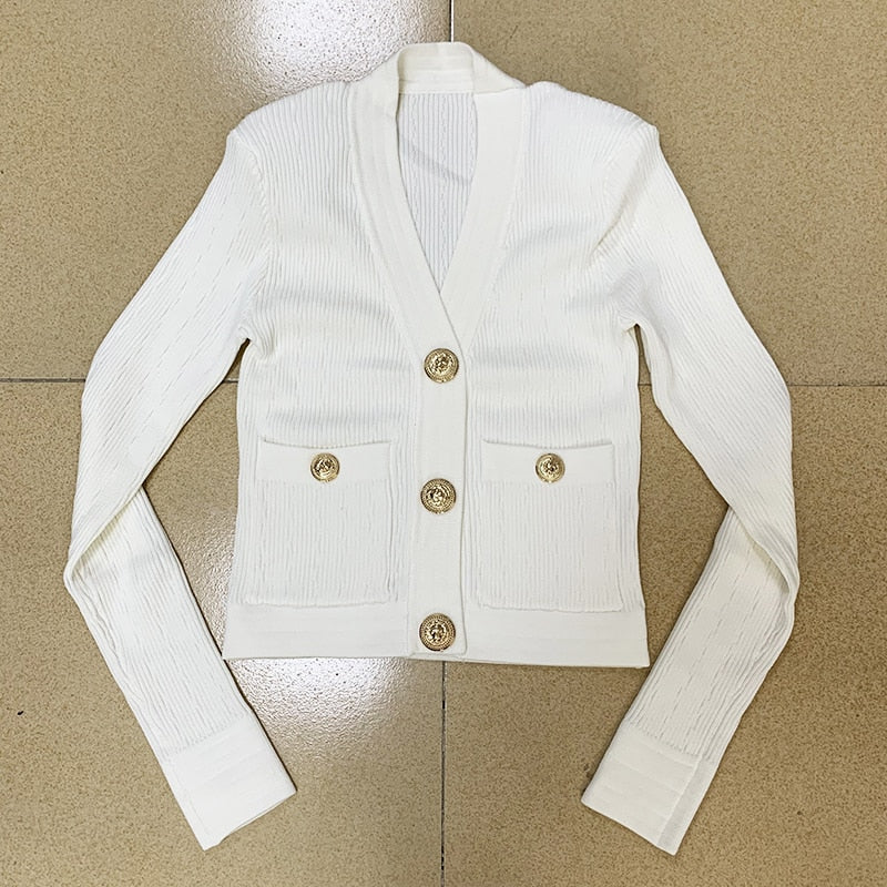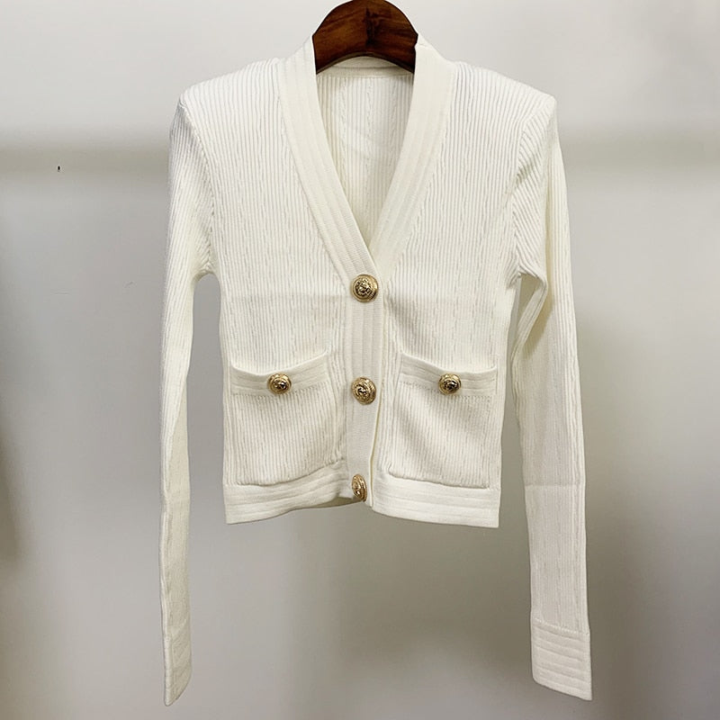 HIGH STREET Neueste 2022 Herbst Winter Designer Pullover Damen V-Ausschnitt Lion Buttons Strickjacke Top